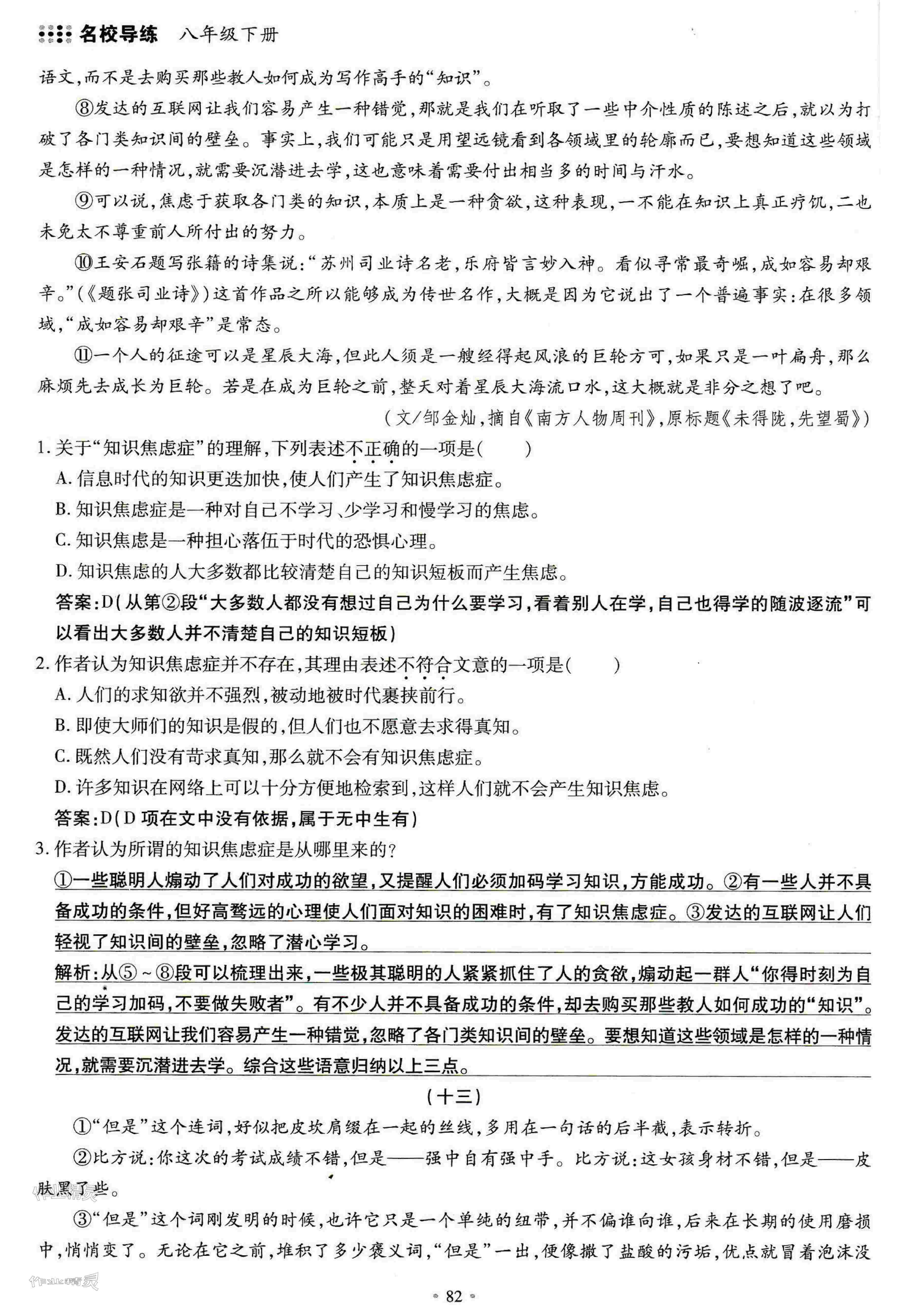 - 参考答案第82页