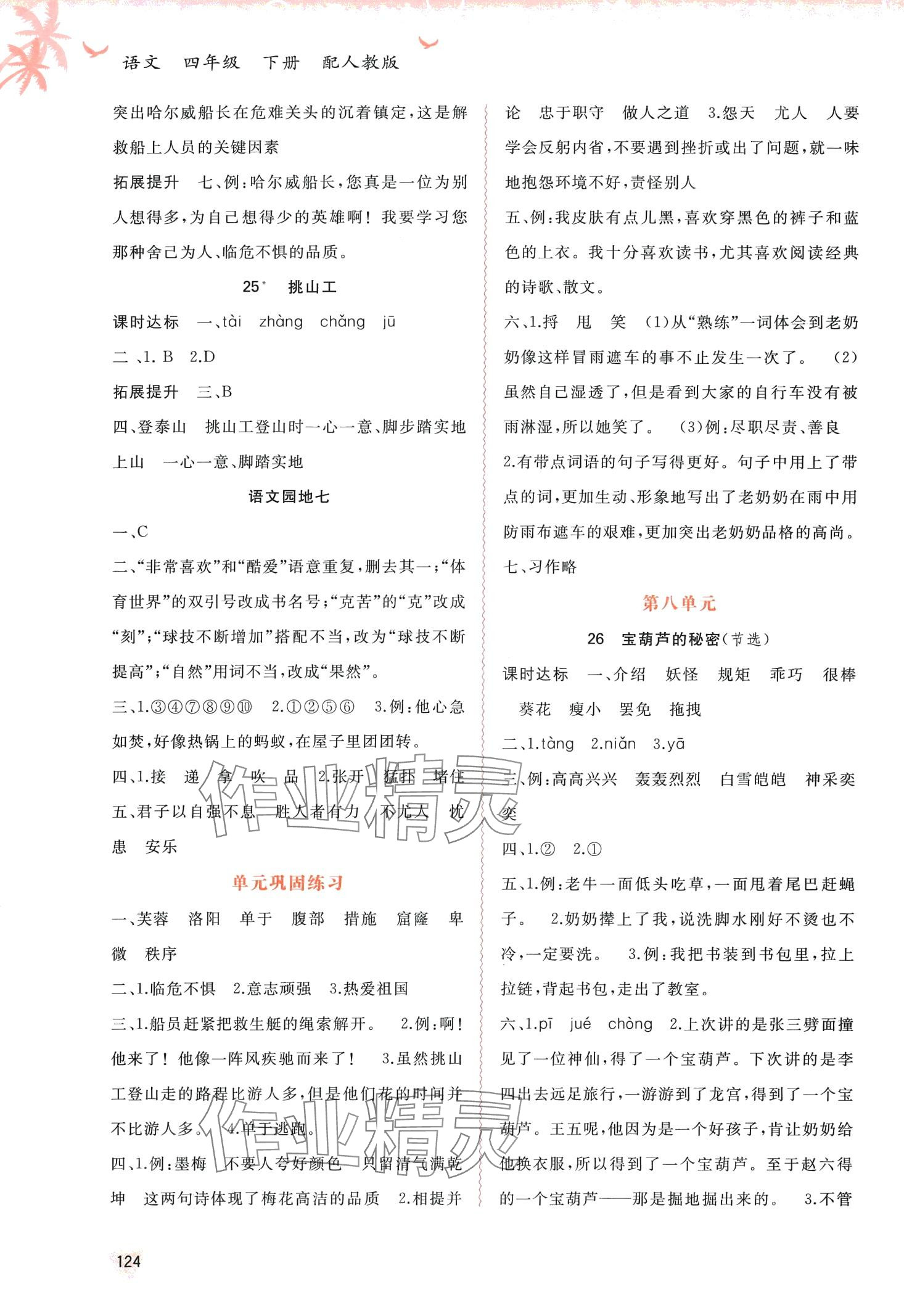 注:目前有些书本章节名称可能整理的还不是很完善,但都是按照顺序排列的,请同学们按照顺序仔细查找。练习册 2024年新课程学习与测评同步学习四年级语文下册人教版 答案主要是用来给同学们做完题方便对答案用的,请勿直接抄袭。