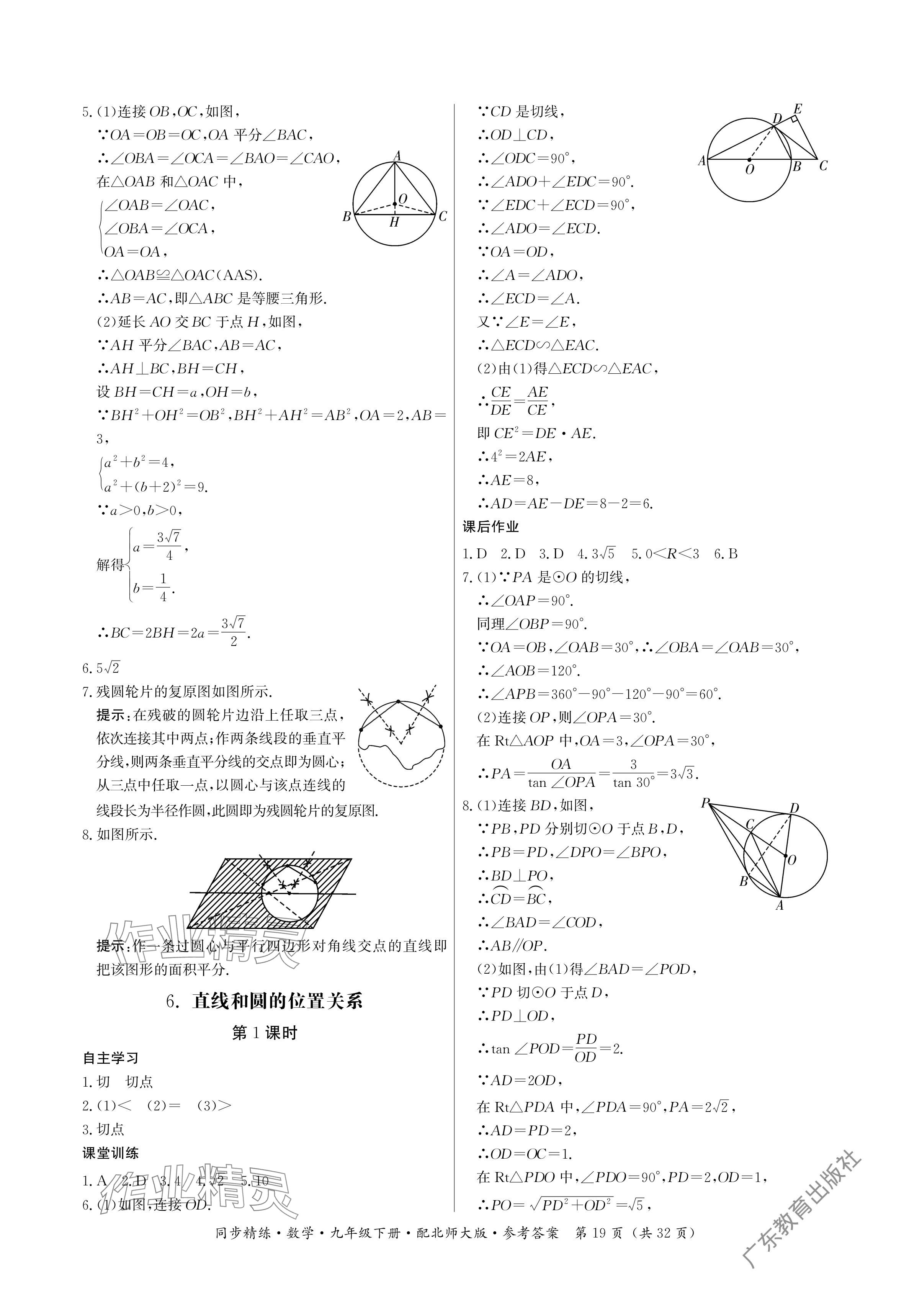 注:目前有些书本章节名称可能整理的还不是很完善,但都是按照顺序排列的,请同学们按照顺序仔细查找。练习册 2024年同步精练广东人民出版社九年级数学下册北师大版深圳专版 答案主要是用来给同学们做完题方便对答案用的,请勿直接抄袭。
