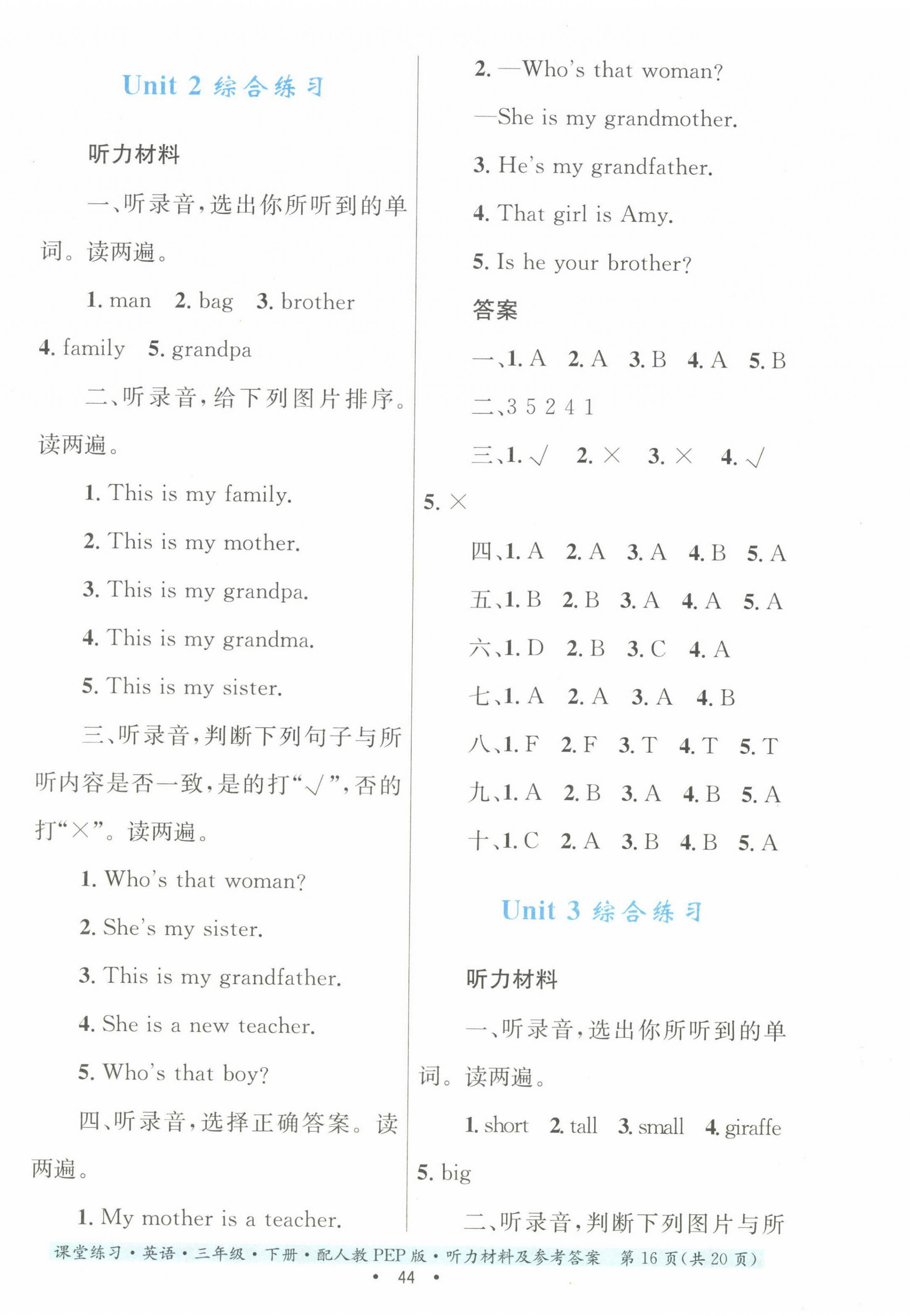 注:目前有些书本章节名称可能整理的还不是很完善,但都是按照顺序排列的,请同学们按照顺序仔细查找。练习册 2024年课堂练习三年级英语下册人教PEP版 答案主要是用来给同学们做完题方便对答案用的,请勿直接抄袭。