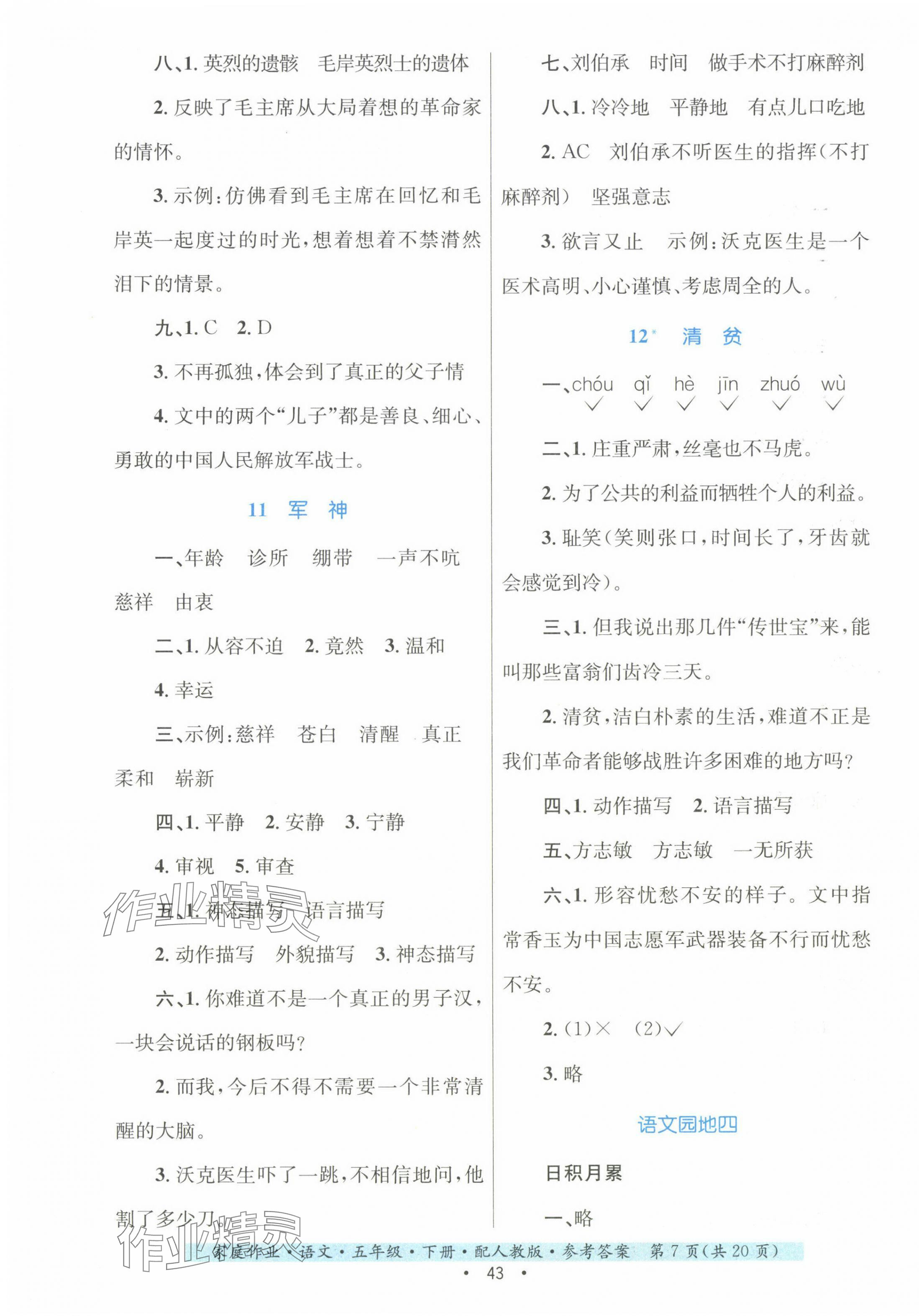 注:目前有些书本章节名称可能整理的还不是很完善,但都是按照顺序排列的,请同学们按照顺序仔细查找。练习册 2024年家庭作业五年级语文下册人教版 答案主要是用来给同学们做完题方便对答案用的,请勿直接抄袭。