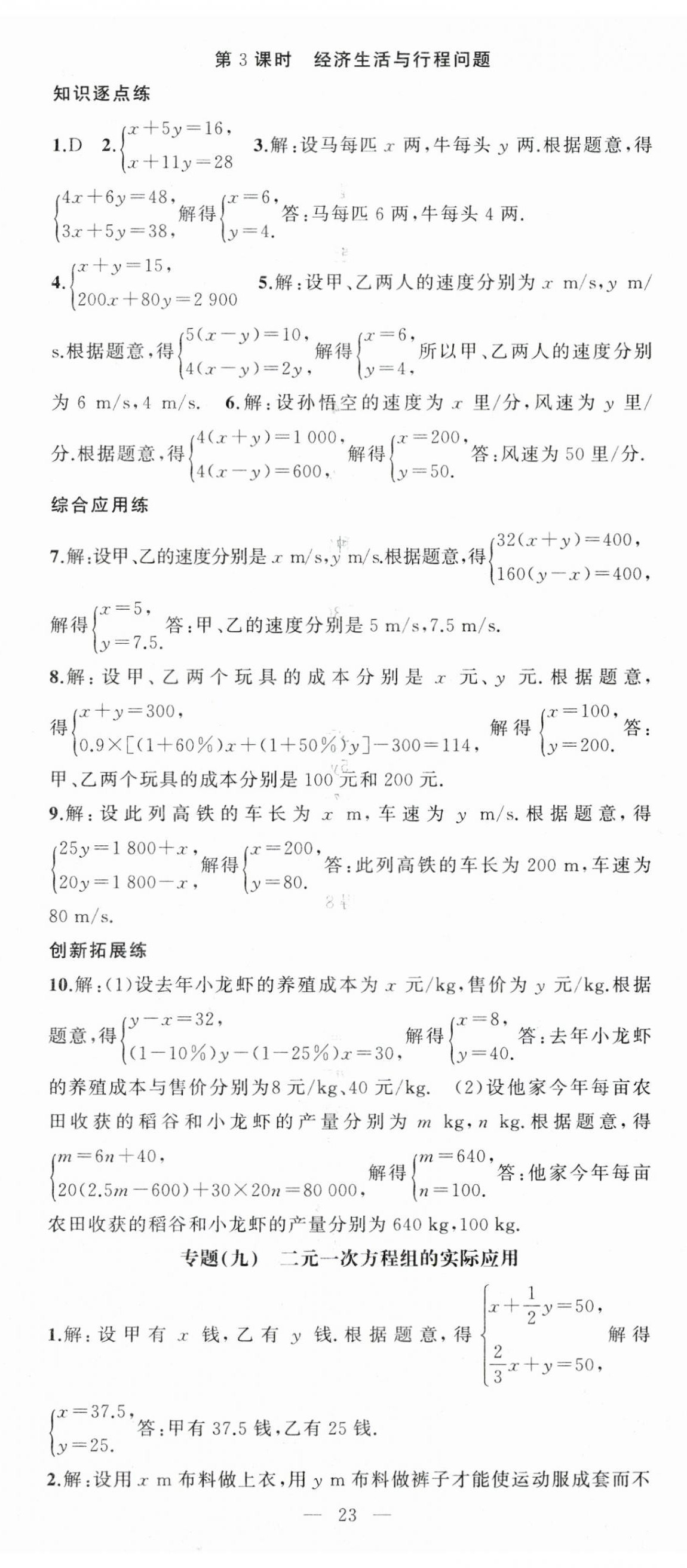 2024年同步作业本练闯考七年级数学下册人教版安徽专版
