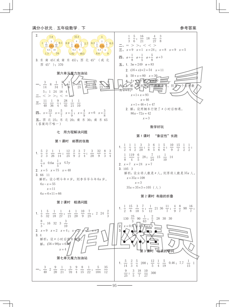 注:目前有些书本章节名称可能整理的还不是很完善,但都是按照顺序排列的,请同学们按照顺序仔细查找。练习册 2024年满分小状元五年级数学下册北师大版 答案主要是用来给同学们做完题方便对答案用的,请勿直接抄袭。