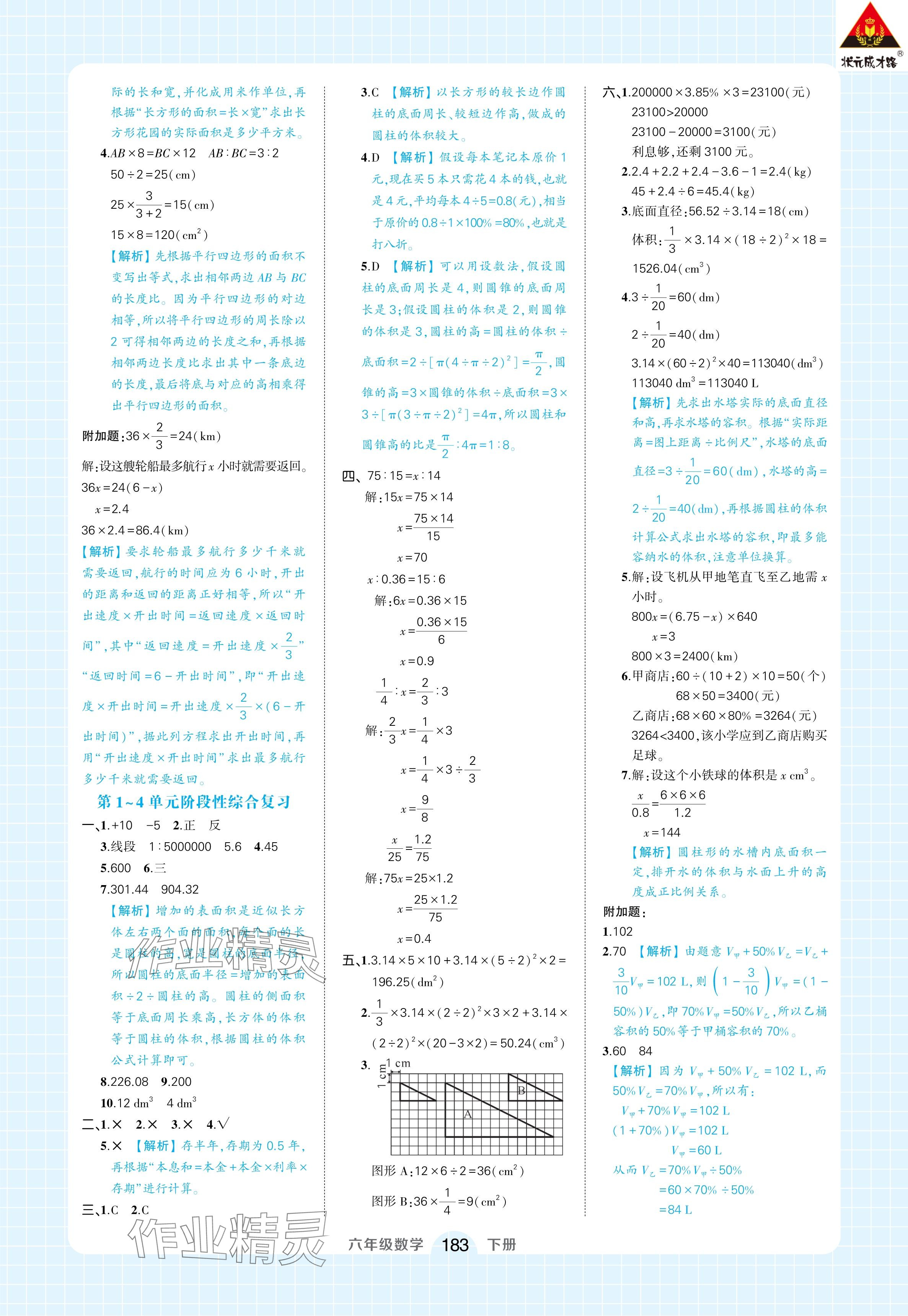 注:目前有些书本章节名称可能整理的还不是很完善,但都是按照顺序排列的,请同学们按照顺序仔细查找。练习册 2024年黄冈状元成才路状元作业本六年级数学下册人教版广东专版 答案主要是用来给同学们做完题方便对答案用的,请勿直接抄袭。