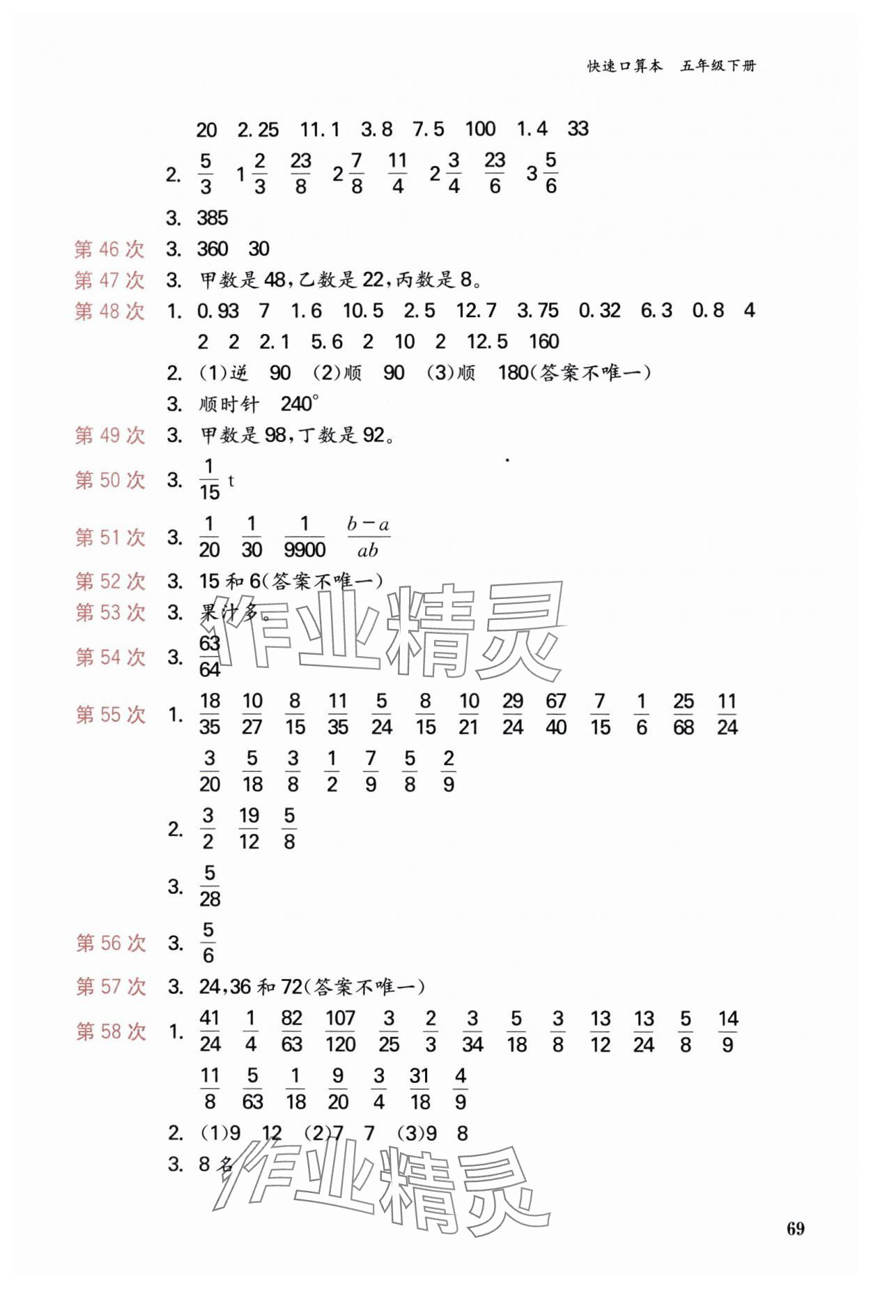 注:目前有些书本章节名称可能整理的还不是很完善,但都是按照顺序排列的,请同学们按照顺序仔细查找。练习册 2024年快速口算本五年级下册人教版 答案主要是用来给同学们做完题方便对答案用的,请勿直接抄袭。