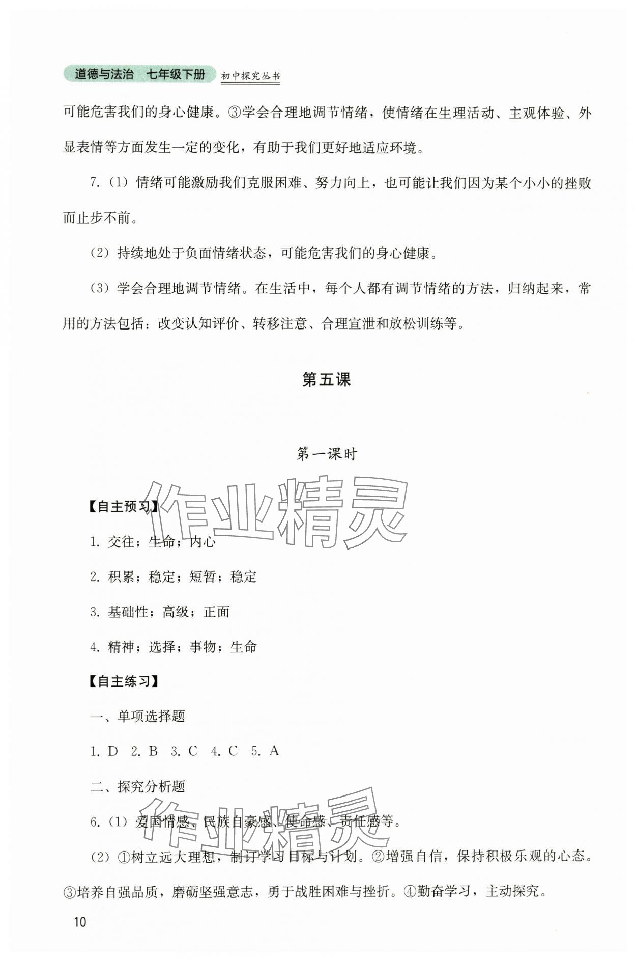 注:目前有些书本章节名称可能整理的还不是很完善,但都是按照顺序排列的,请同学们按照顺序仔细查找。练习册 2024年新课程实践与探究丛书七年级道德与法治下册人教版 答案主要是用来给同学们做完题方便对答案用的,请勿直接抄袭。