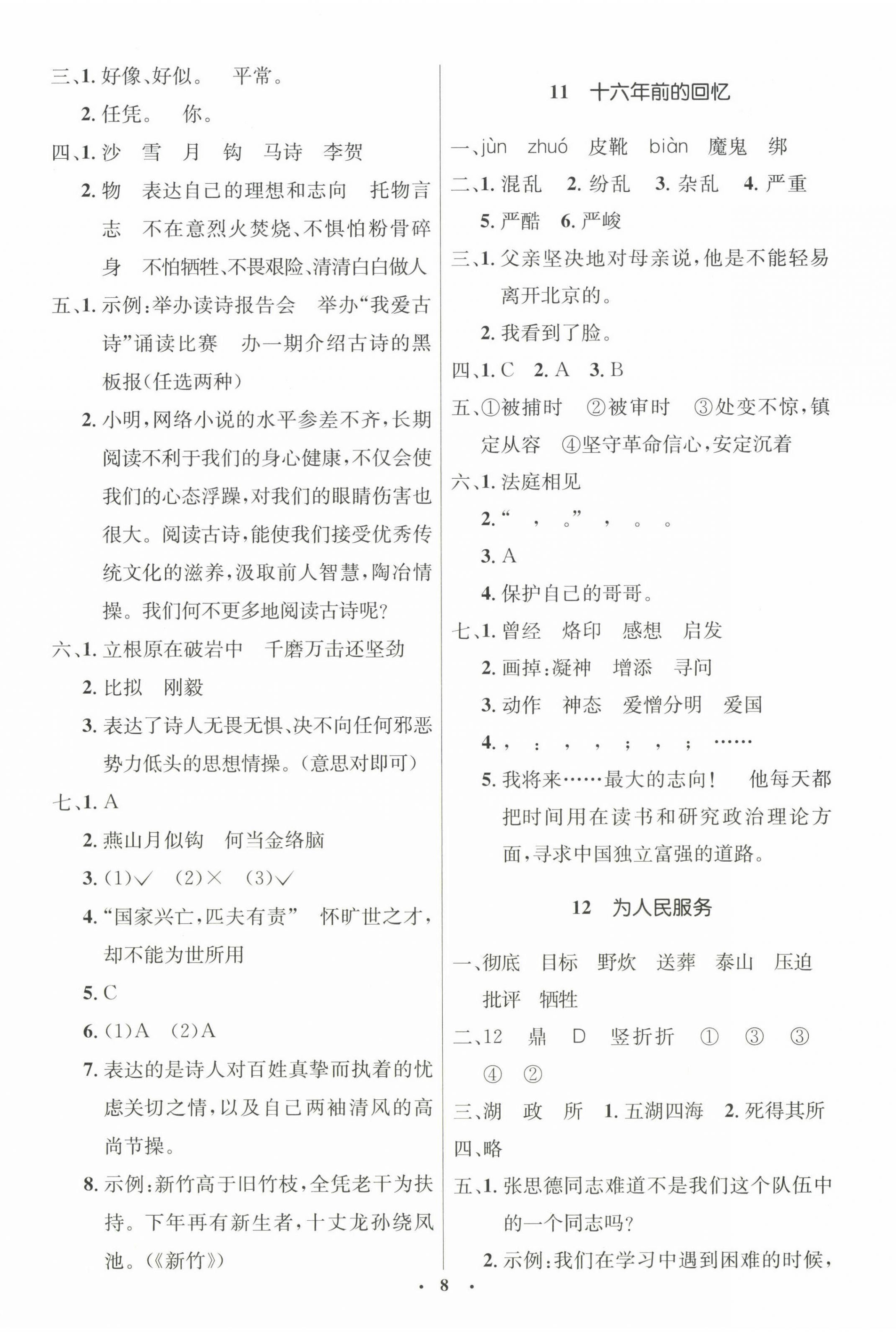 注:目前有些书本章节名称可能整理的还不是很完善,但都是按照顺序排列的,请同学们按照顺序仔细查找。练习册 2024年同步解析与测评学考练六年级语文下册人教版江西专版 答案主要是用来给同学们做完题方便对答案用的,请勿直接抄袭。