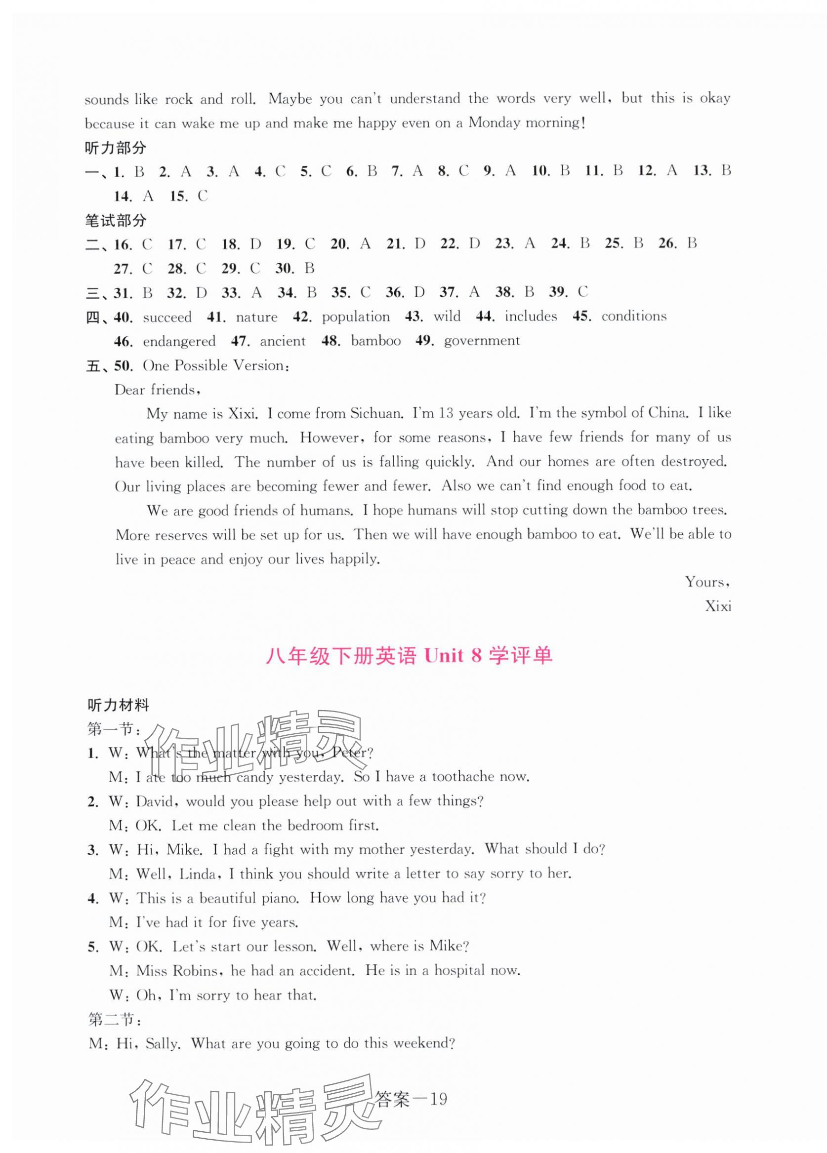 注:目前有些书本章节名称可能整理的还不是很完善,但都是按照顺序排列的,请同学们按照顺序仔细查找。练习册 2024年学评手册八年级英语下册人教版 答案主要是用来给同学们做完题方便对答案用的,请勿直接抄袭。