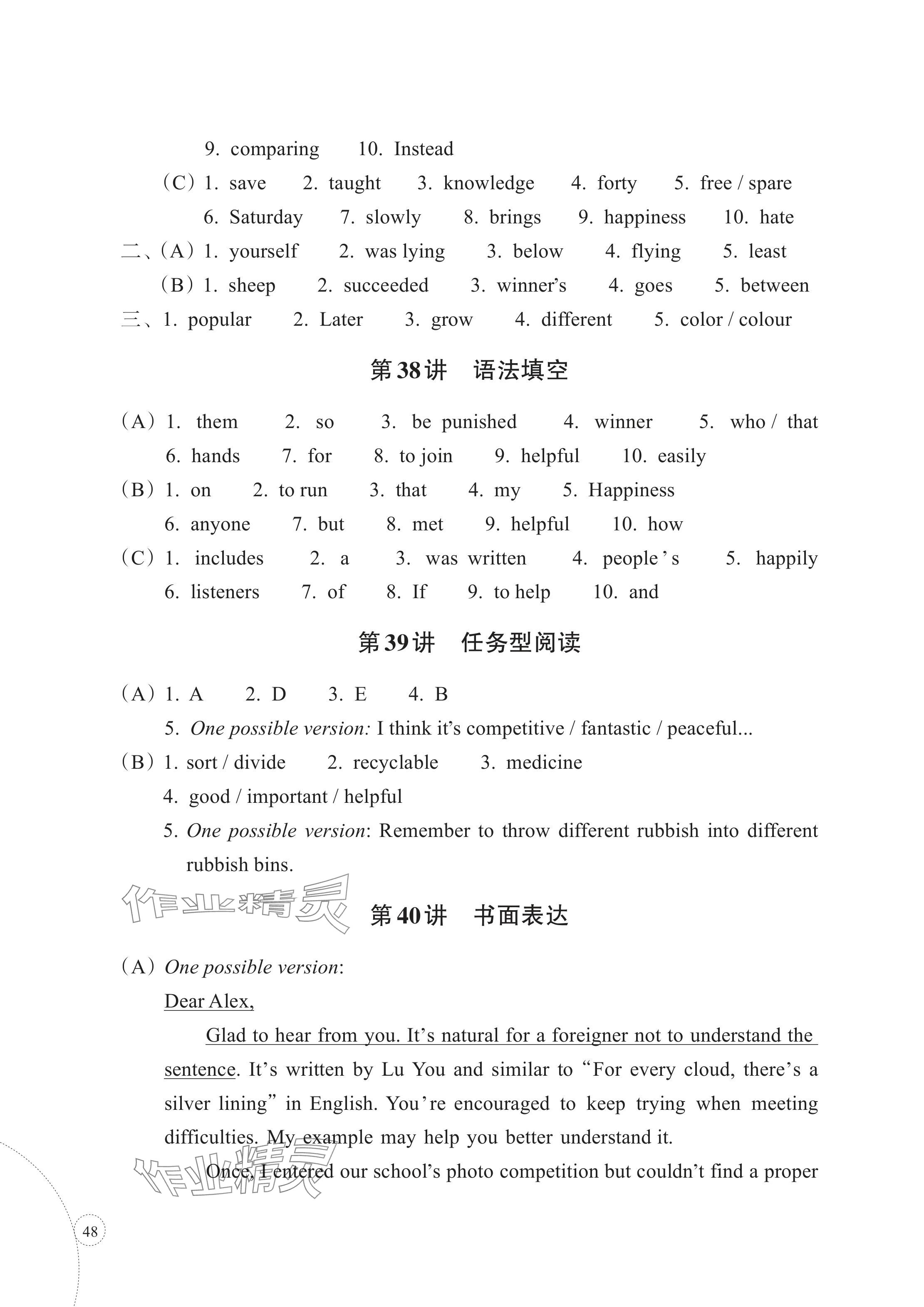 - 参考答案第38页