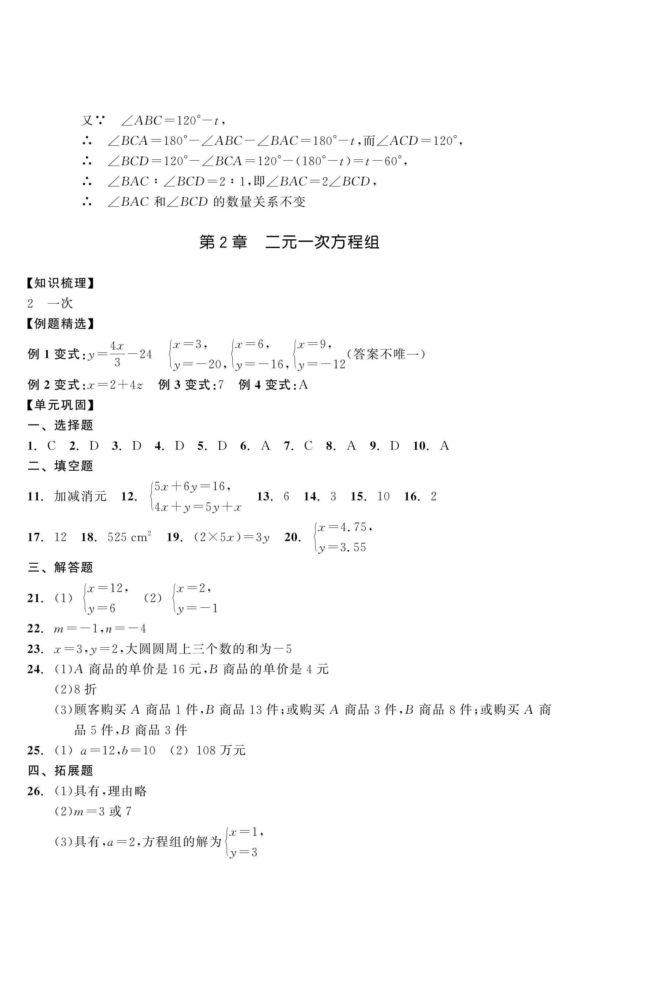 注:目前有些书本章节名称可能整理的还不是很完善,但都是按照顺序排列的,请同学们按照顺序仔细查找。练习册 2024年单元学习指导与练习七年级数学下册浙教版 答案主要是用来给同学们做完题方便对答案用的,请勿直接抄袭。