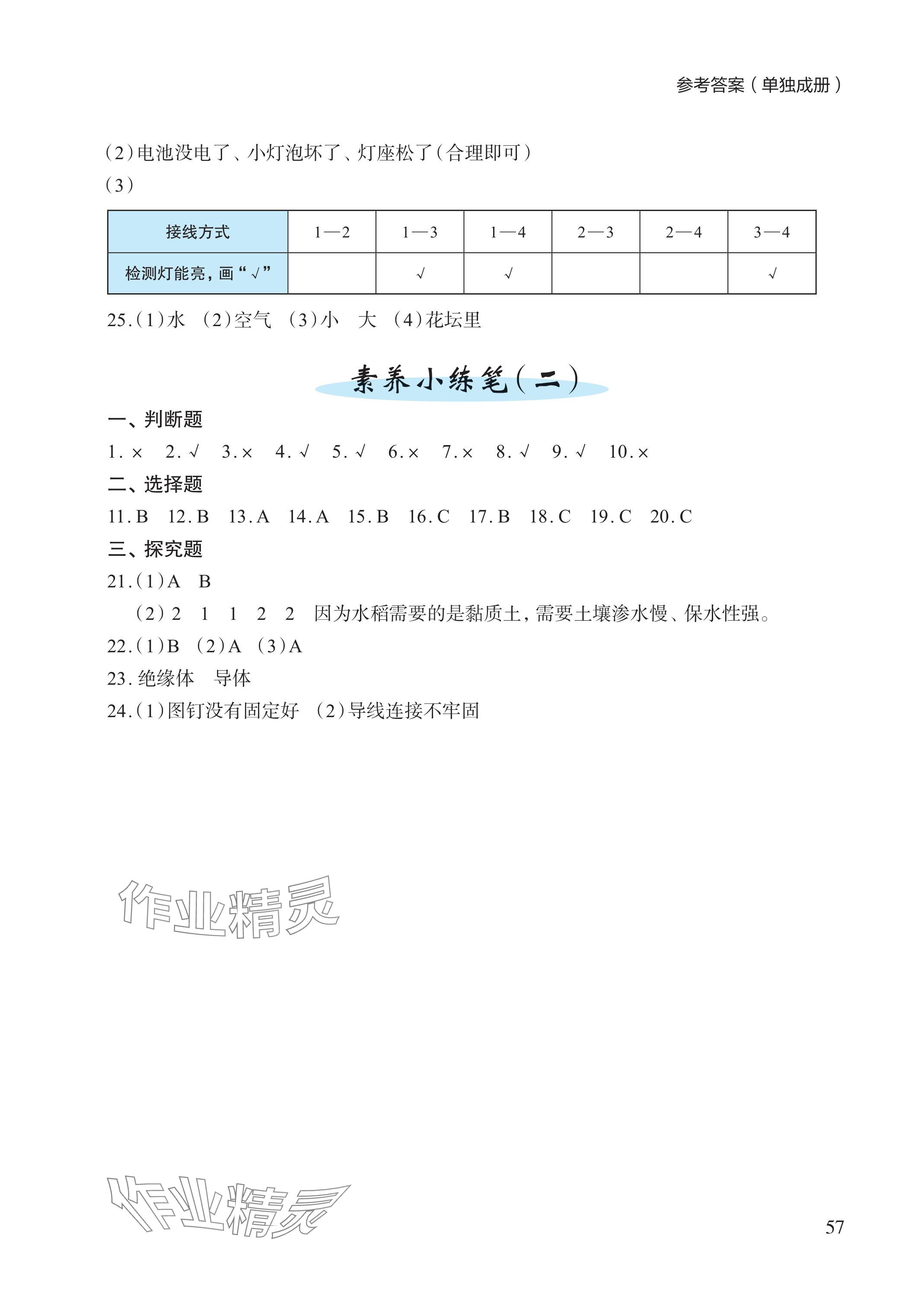注:目前有些书本章节名称可能整理的还不是很完善,但都是按照顺序排列的,请同学们按照顺序仔细查找。练习册 2024年小学单元素养作业四年级科学下册教科版 答案主要是用来给同学们做完题方便对答案用的,请勿直接抄袭。