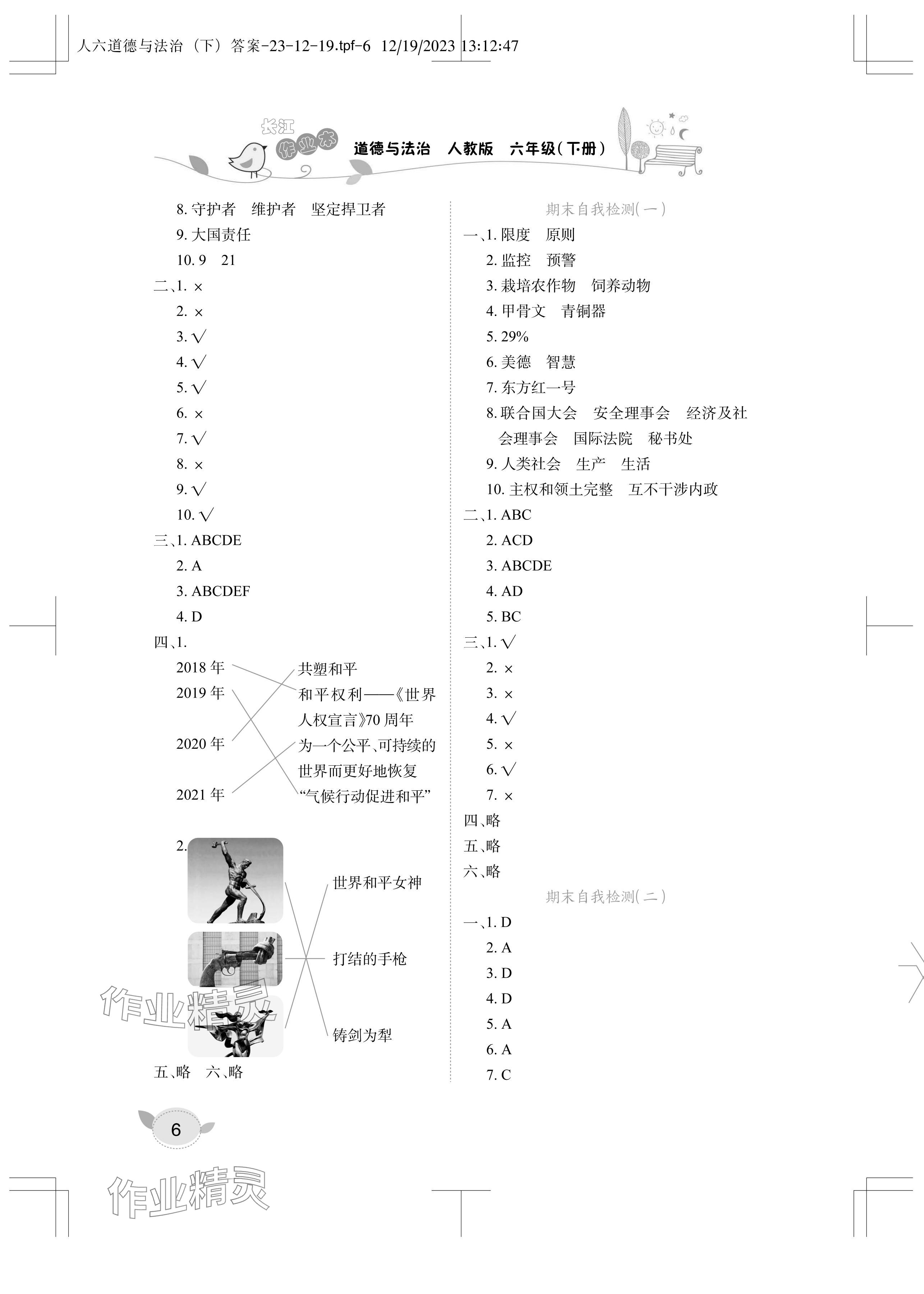 注:目前有些书本章节名称可能整理的还不是很完善,但都是按照顺序排列的,请同学们按照顺序仔细查找。练习册 2024年长江作业本课堂作业六年级道德与法治下册人教版 答案主要是用来给同学们做完题方便对答案用的,请勿直接抄袭。