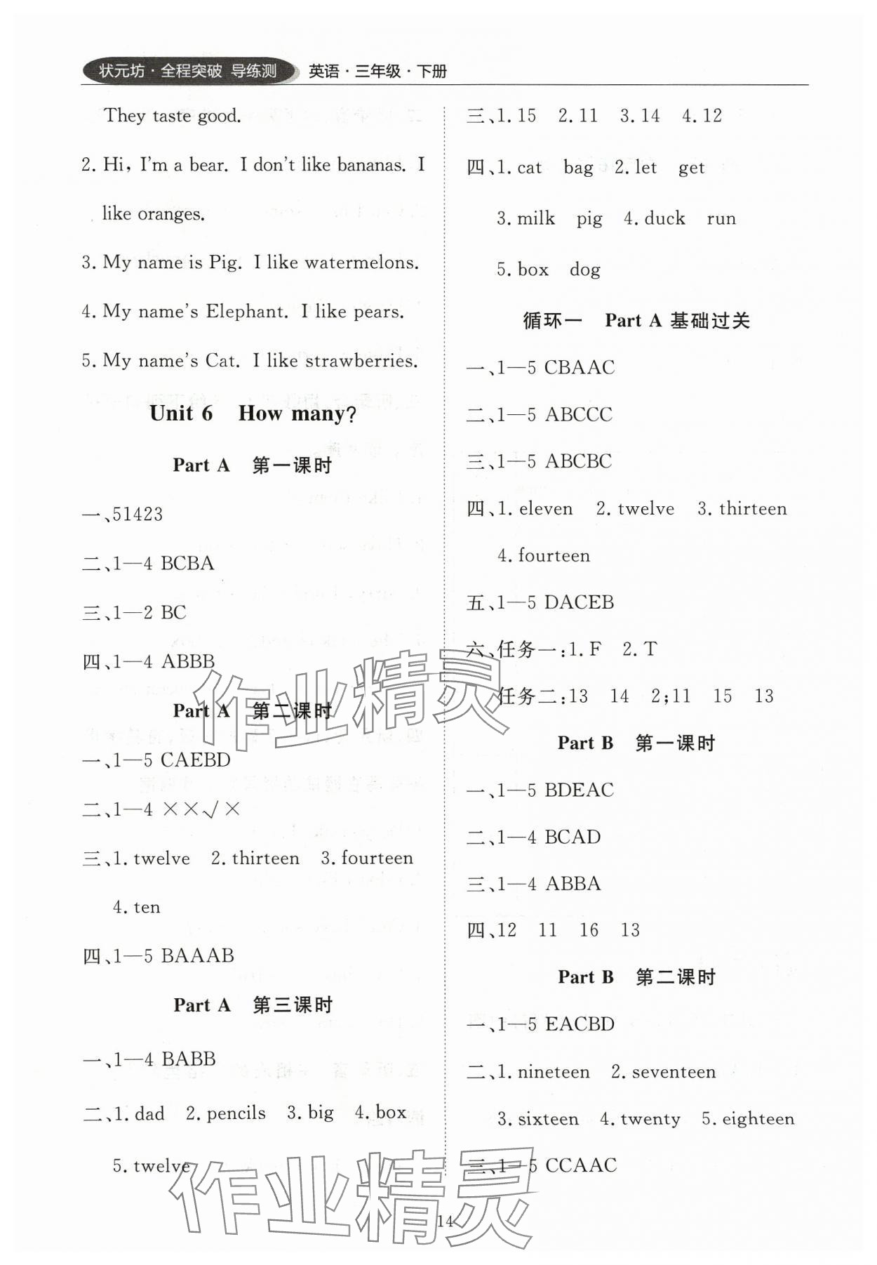注:目前有些书本章节名称可能整理的还不是很完善,但都是按照顺序排列的,请同学们按照顺序仔细查找。练习册 2024年状元坊全程突破导练测三年级英语下册人教版清远专版 答案主要是用来给同学们做完题方便对答案用的,请勿直接抄袭。