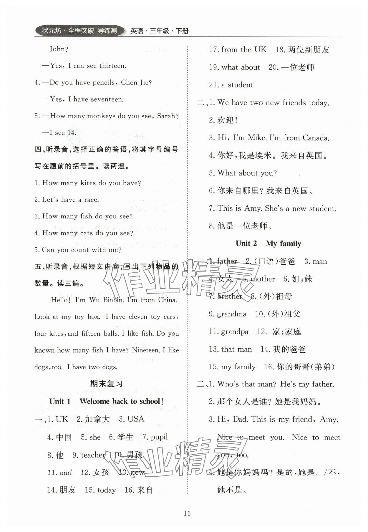 注:目前有些书本章节名称可能整理的还不是很完善,但都是按照顺序排列的,请同学们按照顺序仔细查找。练习册 2024年状元坊全程突破导练测三年级英语下册人教版清远专版 答案主要是用来给同学们做完题方便对答案用的,请勿直接抄袭。