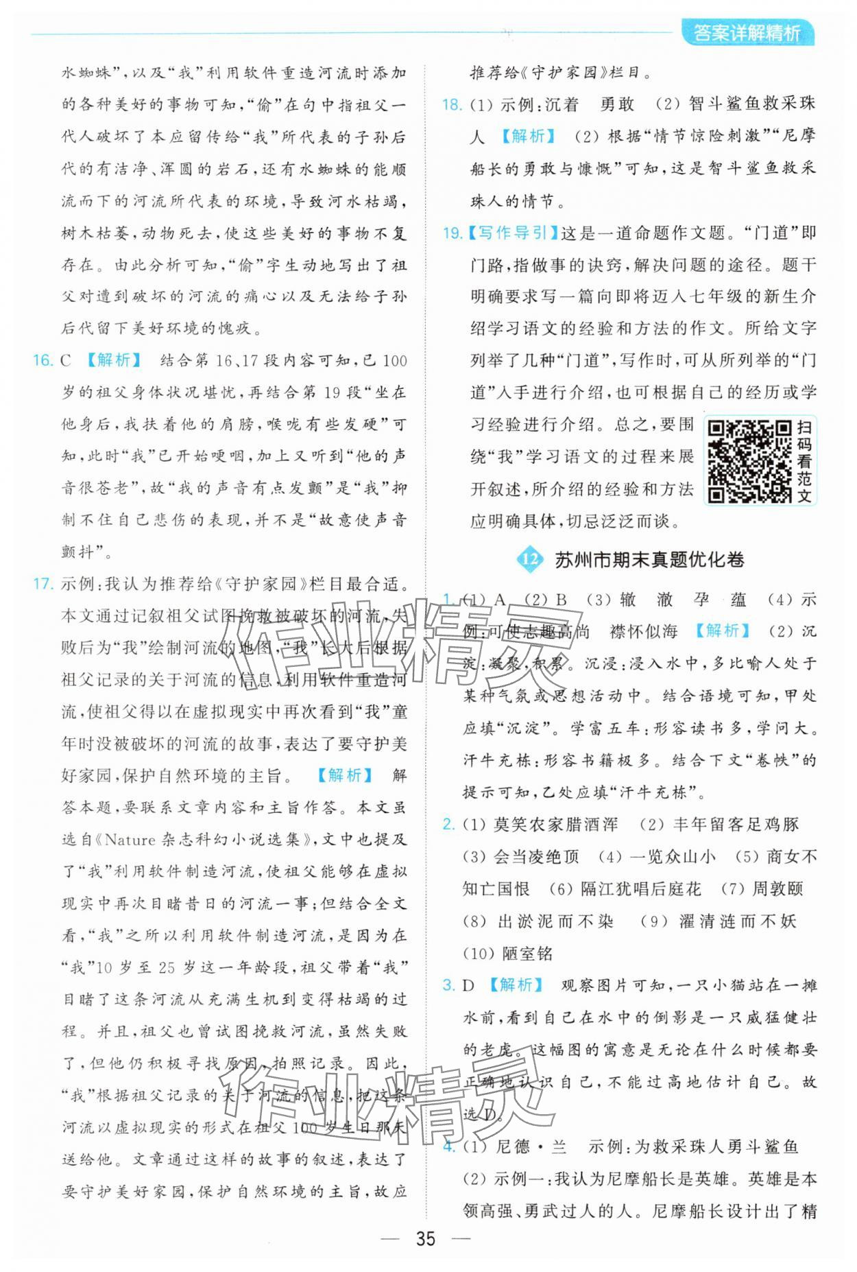 注:目前有些书本章节名称可能整理的还不是很完善,但都是按照顺序排列的,请同学们按照顺序仔细查找。练习册 2024年亮点给力全优卷霸七年级语文下册人教版 答案主要是用来给同学们做完题方便对答案用的,请勿直接抄袭。