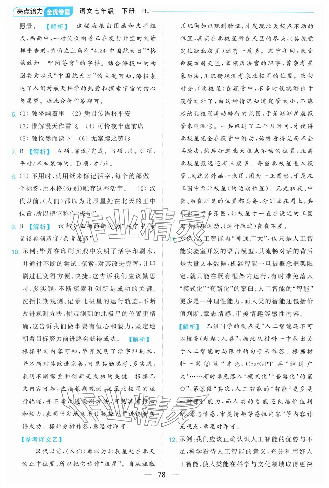 《2024年亮点给力全优卷霸七年级语文下册人教版》