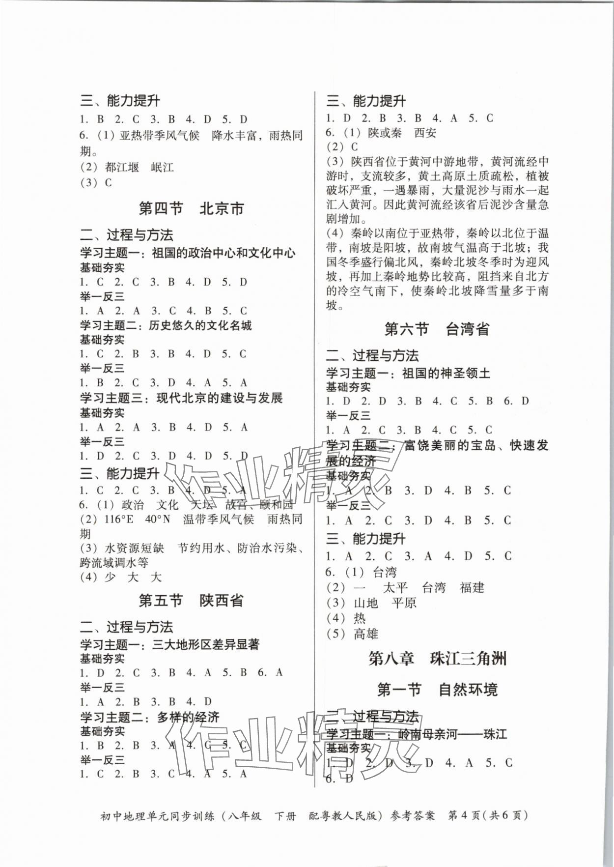 注:目前有些书本章节名称可能整理的还不是很完善,但都是按照顺序排列的,请同学们按照顺序仔细查找。练习册 2024年初中地理单元同步训练八年级下册粤人版 答案主要是用来给同学们做完题方便对答案用的,请勿直接抄袭。