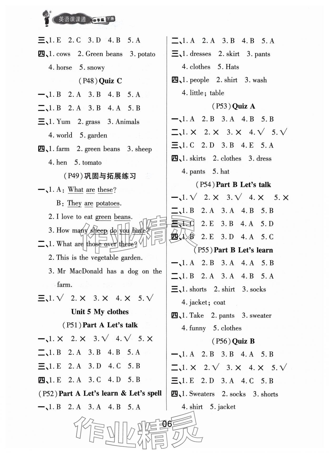 注:目前有些书本章节名称可能整理的还不是很完善,但都是按照顺序排列的,请同学们按照顺序仔细查找。练习册 2024年名师英语课课通四年级英语下册人教版 答案主要是用来给同学们做完题方便对答案用的,请勿直接抄袭。