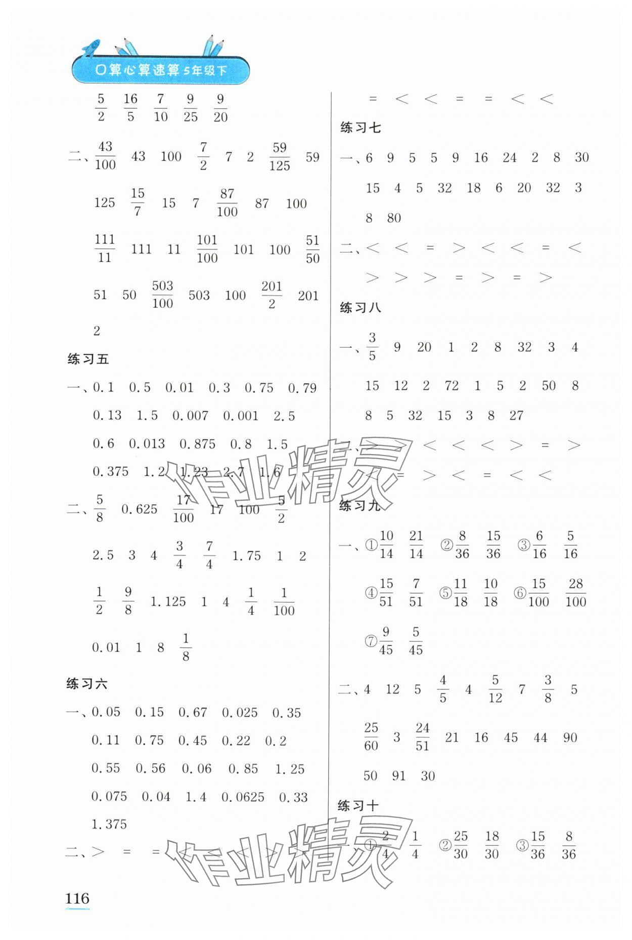 《2024年口算心算速算江苏凤凰美术出版社五年级数学下册苏教版徐州专版》
