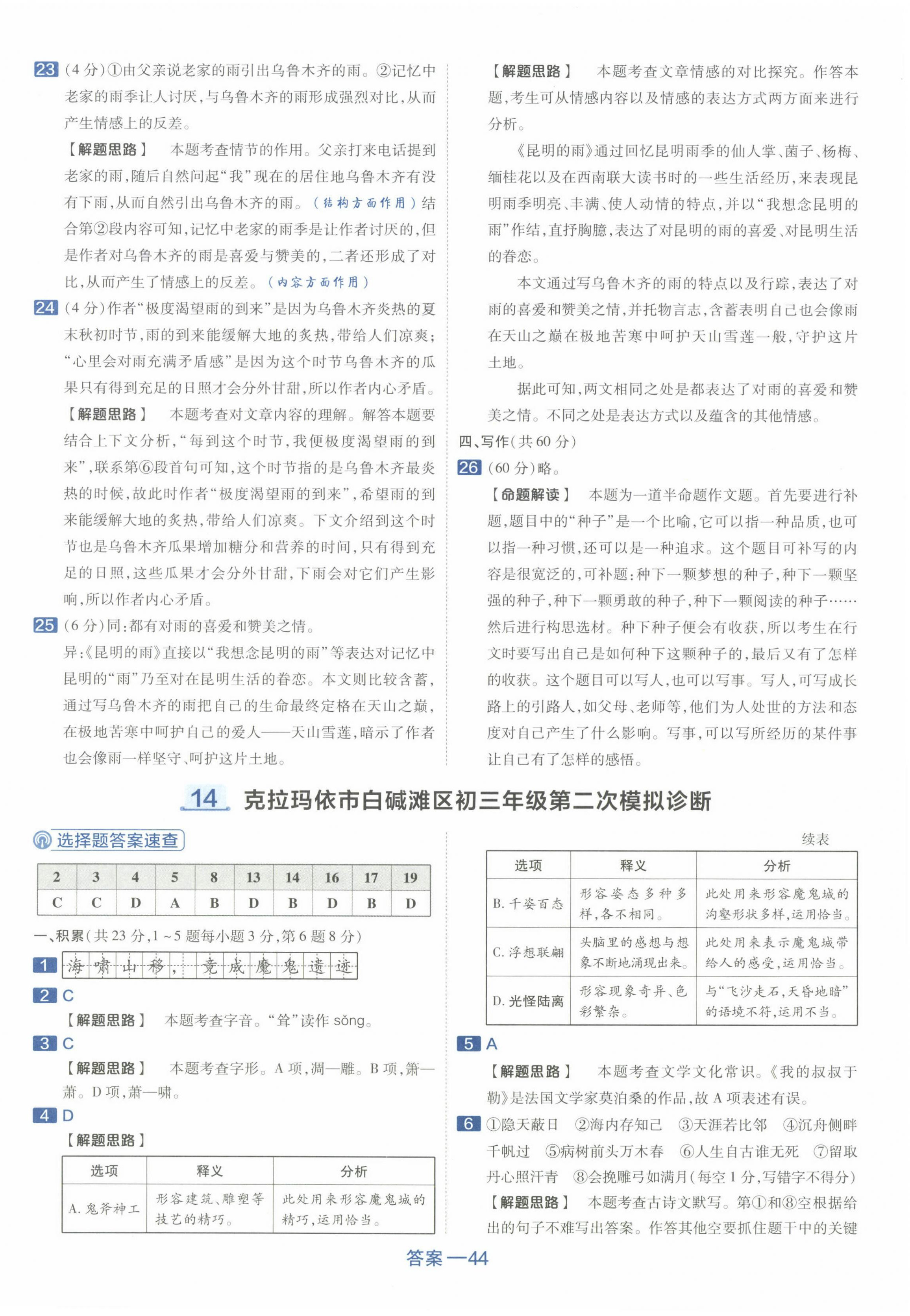 注:目前有些书本章节名称可能整理的还不是很完善,但都是按照顺序排列的,请同学们按照顺序仔细查找。练习册 2024年金考卷45套汇编语文新疆专版 答案主要是用来给同学们做完题方便对答案用的,请勿直接抄袭。