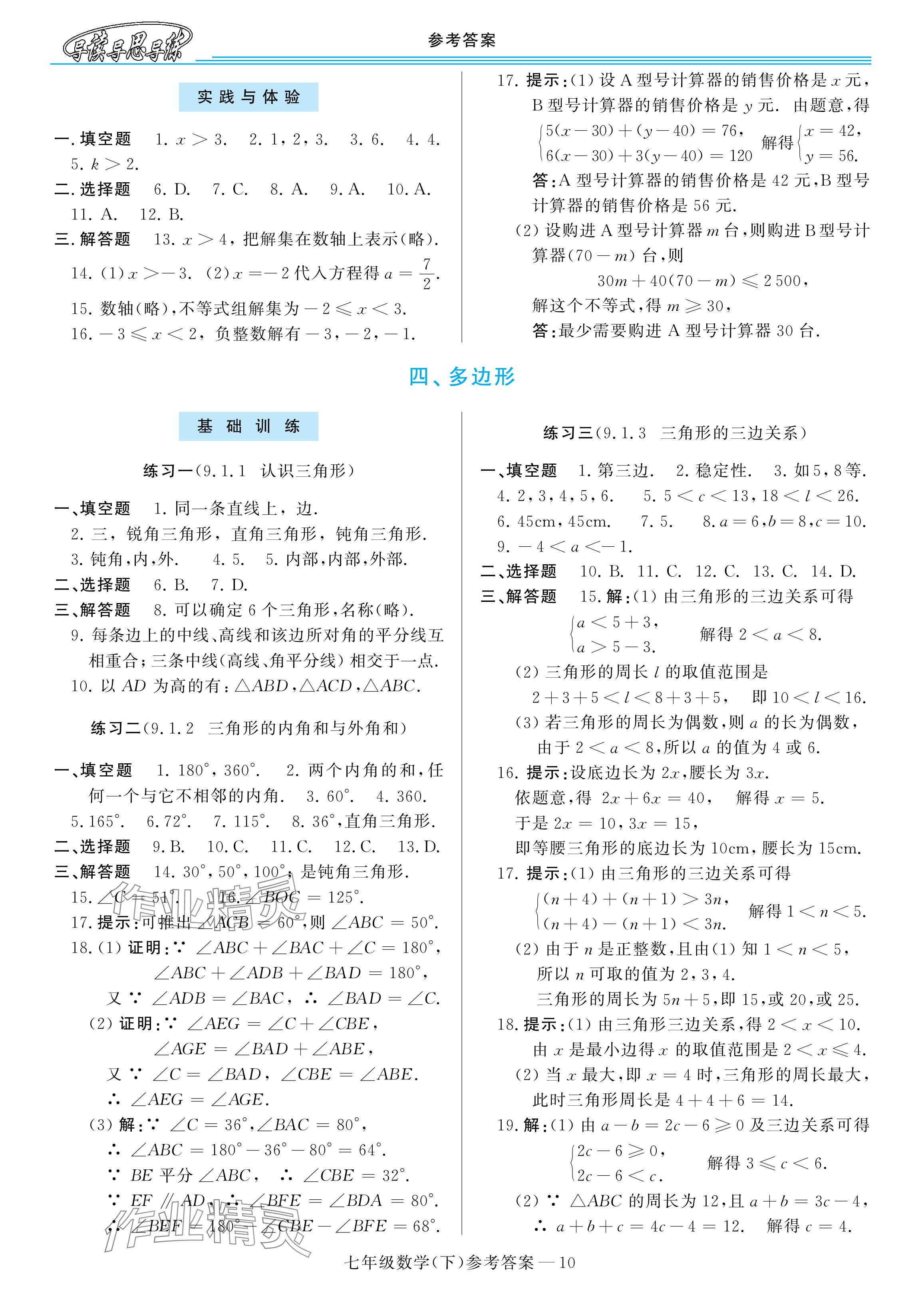 注:目前有些书本章节名称可能整理的还不是很完善,但都是按照顺序排列的,请同学们按照顺序仔细查找。练习册 2024年新课程学习指导河南七年级数学下册华师大版 答案主要是用来给同学们做完题方便对答案用的,请勿直接抄袭。