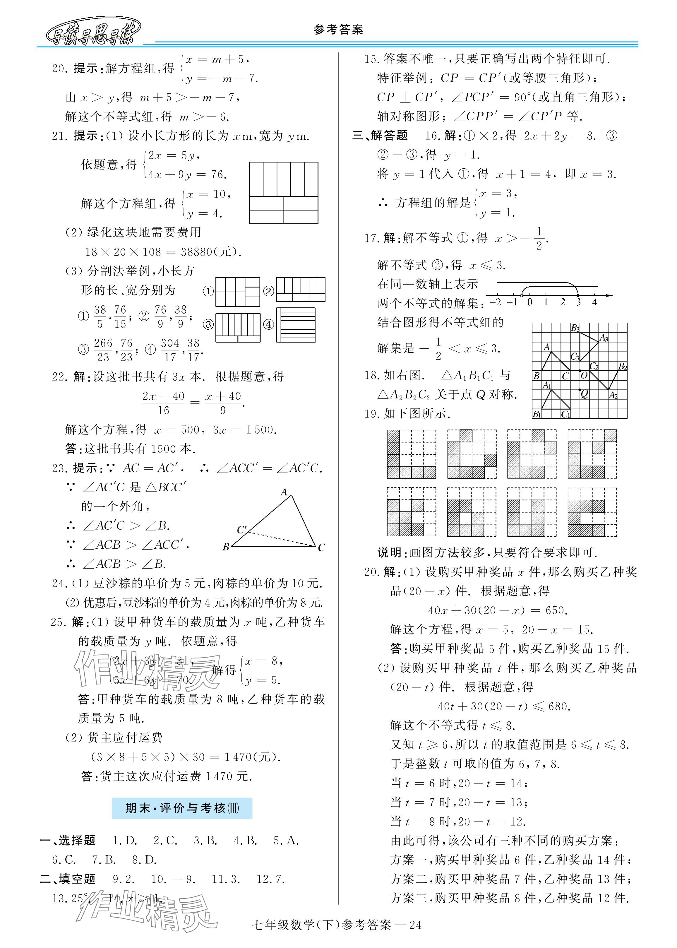 注:目前有些书本章节名称可能整理的还不是很完善,但都是按照顺序排列的,请同学们按照顺序仔细查找。练习册 2024年新课程学习指导河南七年级数学下册华师大版 答案主要是用来给同学们做完题方便对答案用的,请勿直接抄袭。