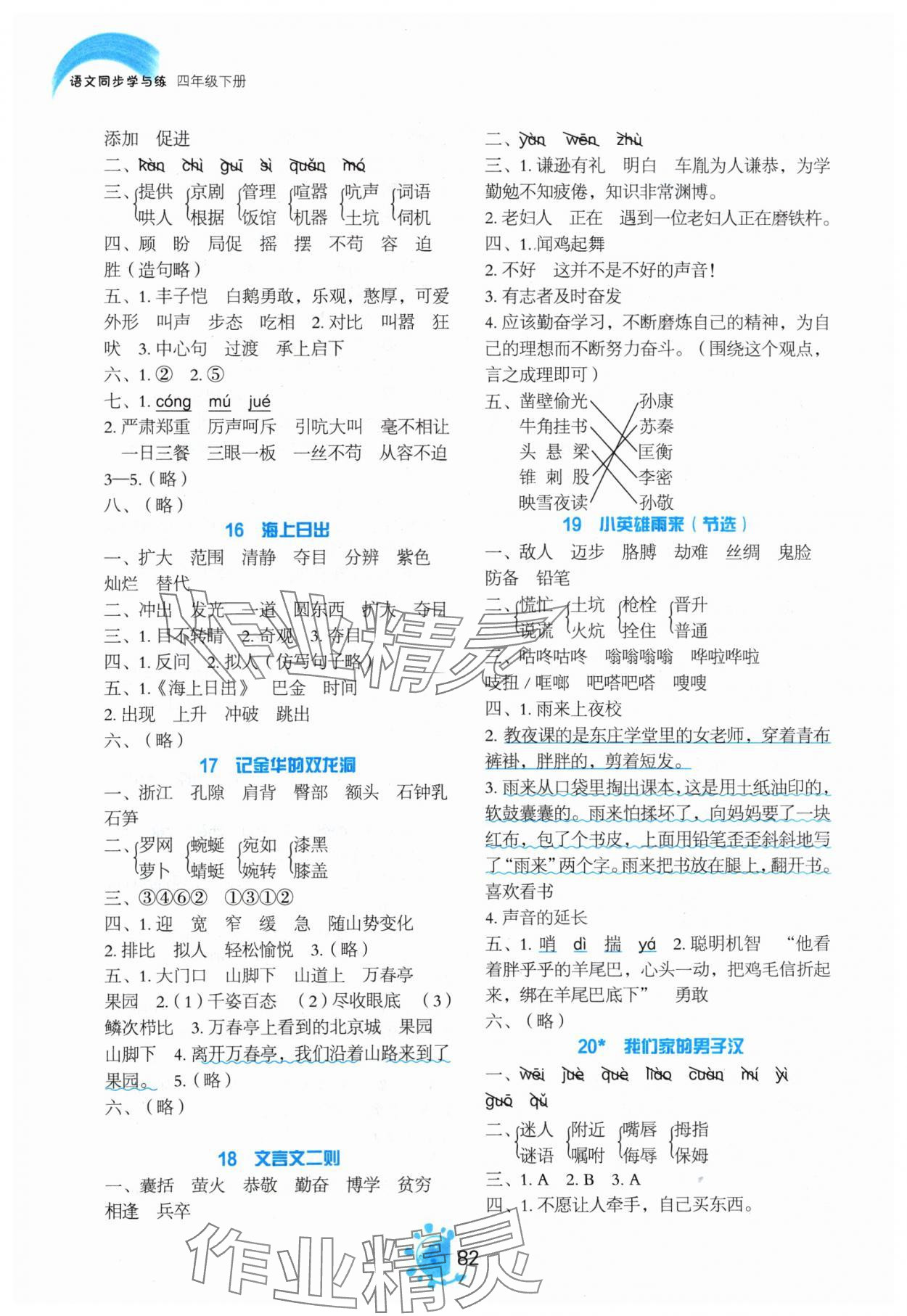 注:目前有些书本章节名称可能整理的还不是很完善,但都是按照顺序排列的,请同学们按照顺序仔细查找。练习册 2024年同步学与练四年级语文下册人教版 答案主要是用来给同学们做完题方便对答案用的,请勿直接抄袭。