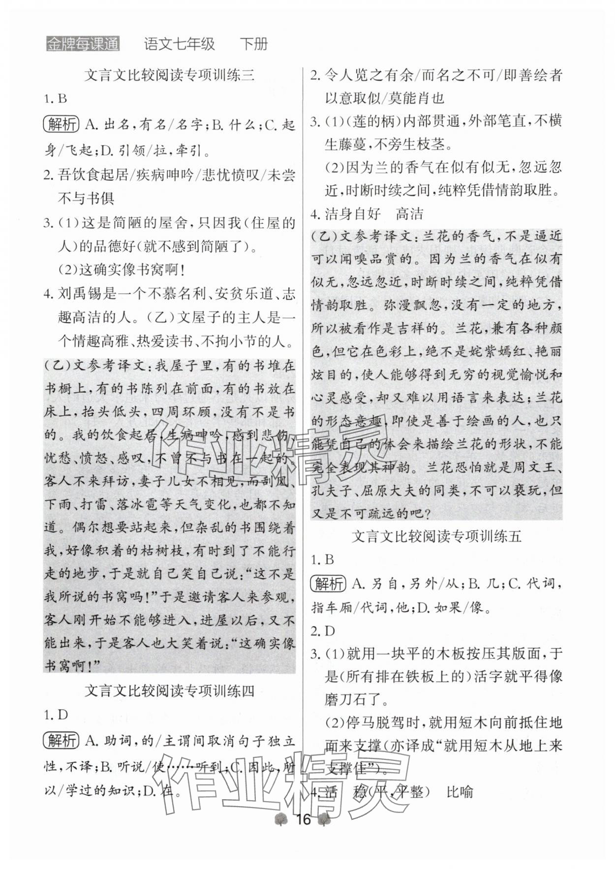 注:目前有些书本章节名称可能整理的还不是很完善,但都是按照顺序排列的,请同学们按照顺序仔细查找。练习册 2024年点石成金金牌每课通七年级语文下册人教版辽宁专版 答案主要是用来给同学们做完题方便对答案用的,请勿直接抄袭。