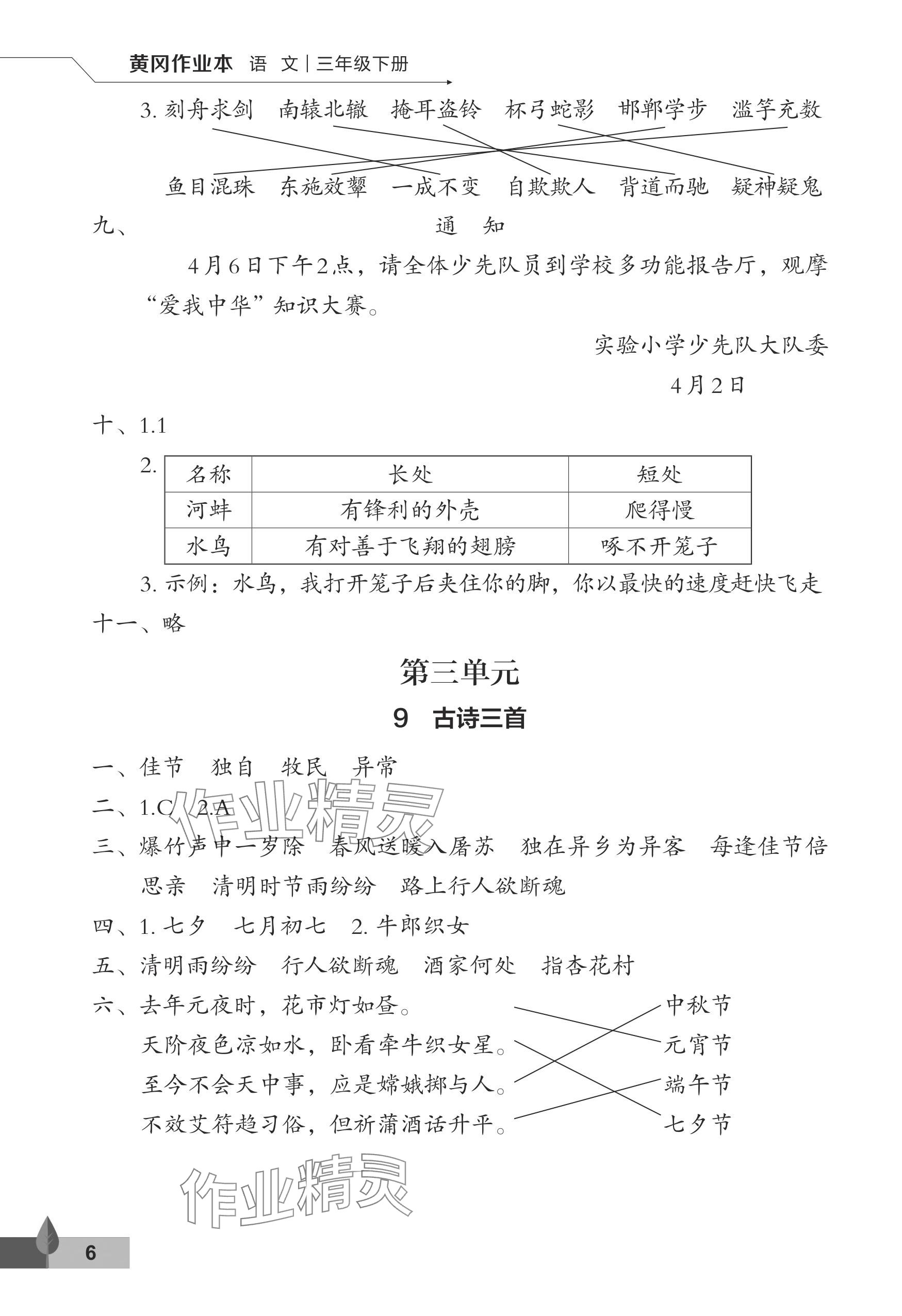 注:目前有些书本章节名称可能整理的还不是很完善,但都是按照顺序排列的,请同学们按照顺序仔细查找。练习册 2024年黄冈作业本武汉大学出版社三年级语文下册人教版 答案主要是用来给同学们做完题方便对答案用的,请勿直接抄袭。