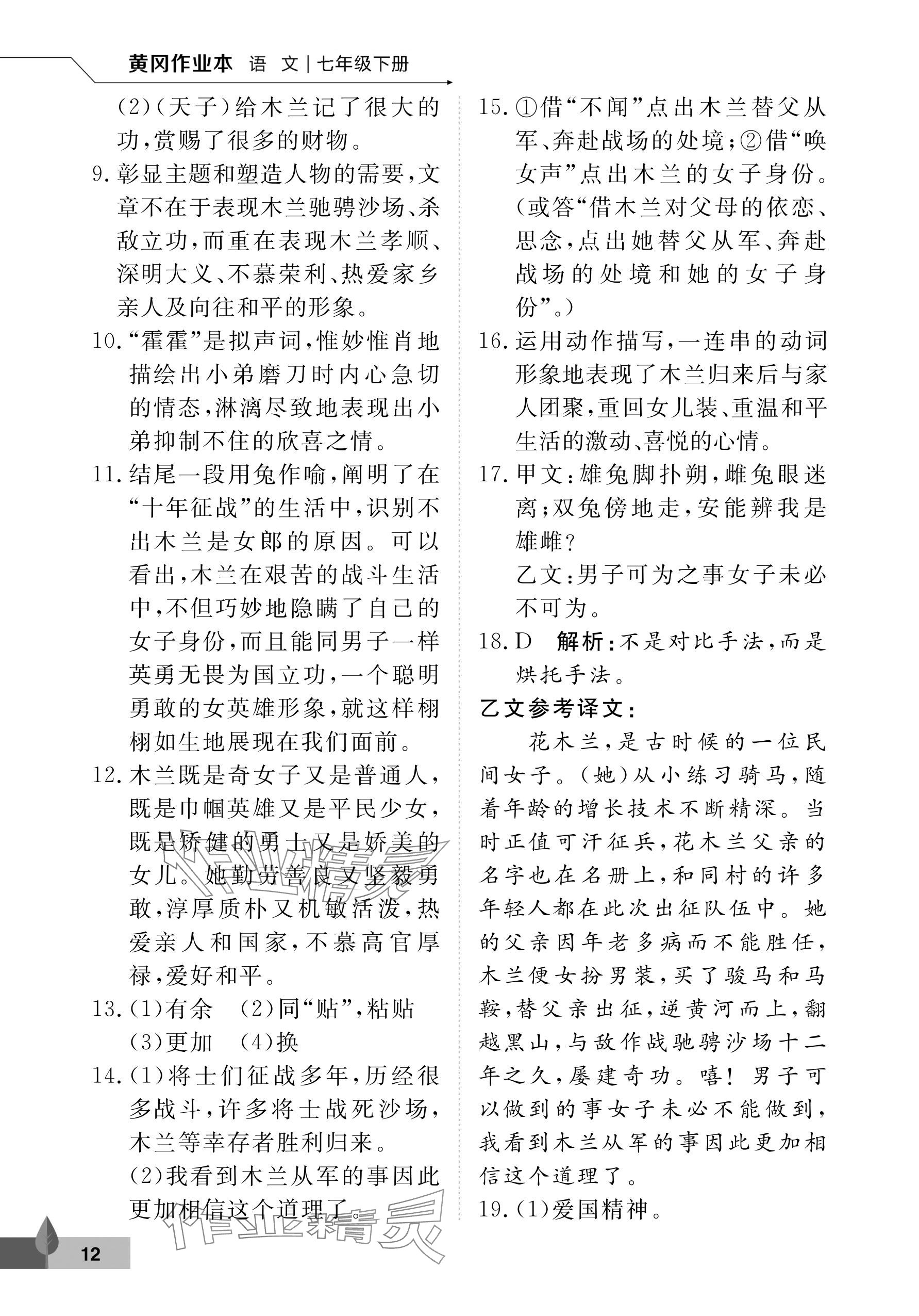 注:目前有些书本章节名称可能整理的还不是很完善,但都是按照顺序排列的,请同学们按照顺序仔细查找。练习册 2024年黄冈作业本武汉大学出版社七年级语文下册人教版 答案主要是用来给同学们做完题方便对答案用的,请勿直接抄袭。