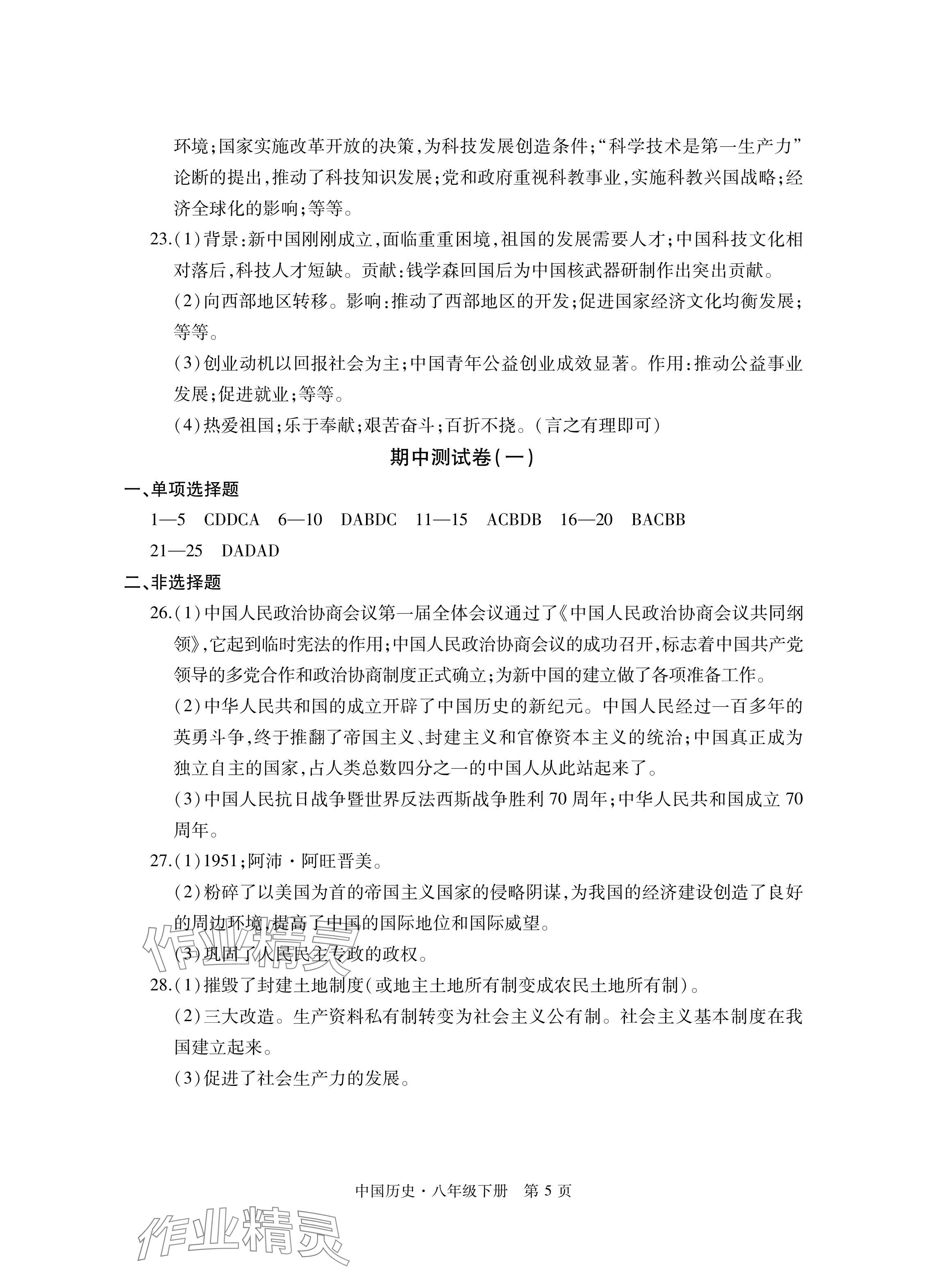 注:目前有些书本章节名称可能整理的还不是很完善,但都是按照顺序排列的,请同学们按照顺序仔细查找。练习册 2024年初中同步练习册自主测试卷八年级历史下册人教版 答案主要是用来给同学们做完题方便对答案用的,请勿直接抄袭。