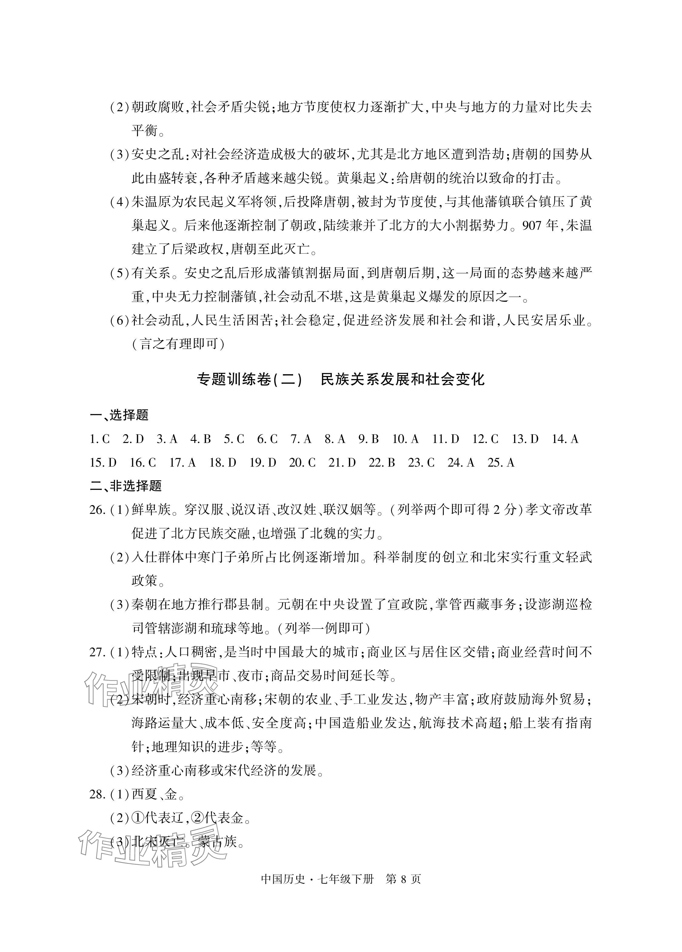 注:目前有些书本章节名称可能整理的还不是很完善,但都是按照顺序排列的,请同学们按照顺序仔细查找。练习册 2024年初中同步练习册自主测试卷七年级历史下册人教版 答案主要是用来给同学们做完题方便对答案用的,请勿直接抄袭。