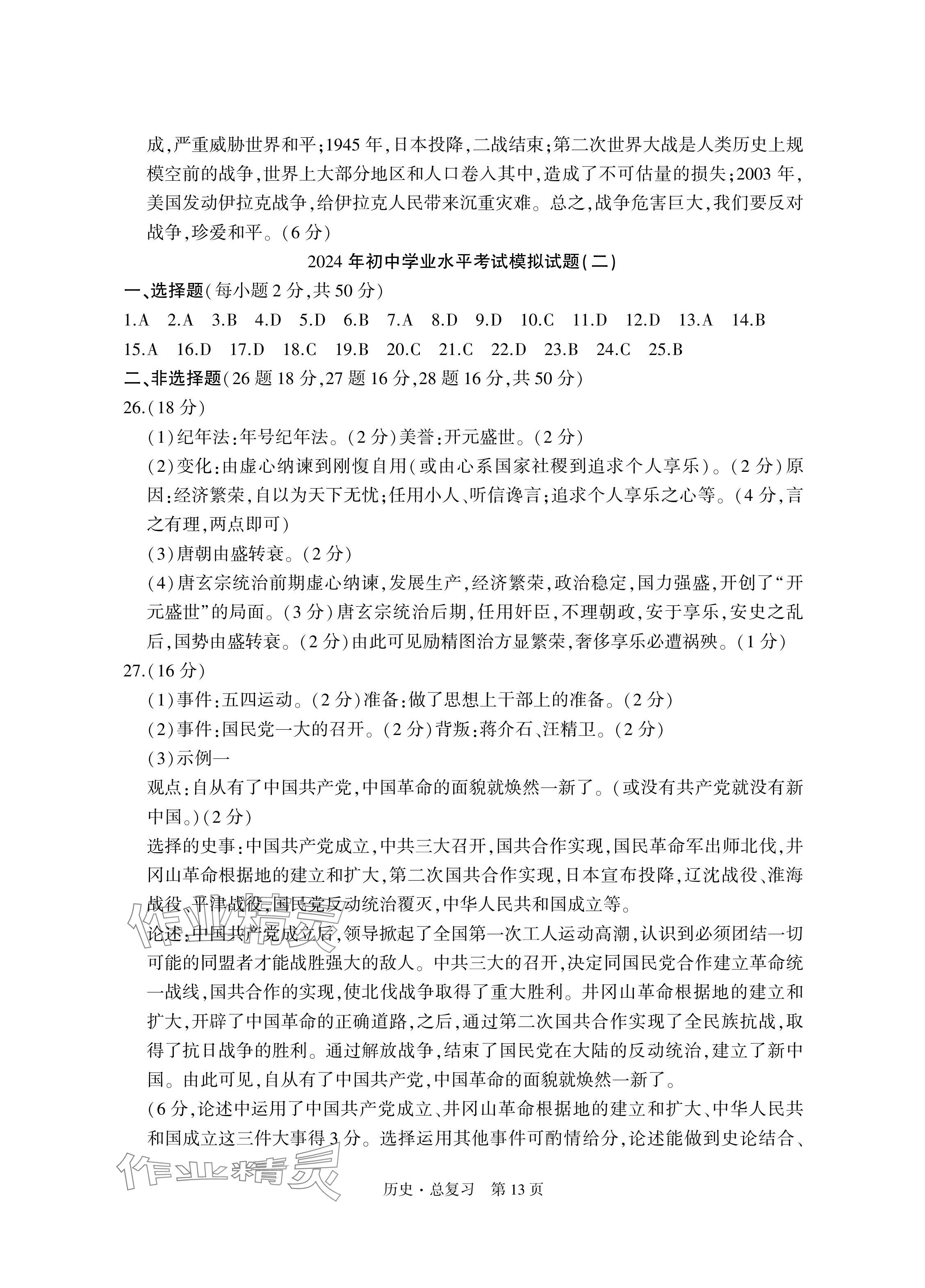 注:目前有些书本章节名称可能整理的还不是很完善,但都是按照顺序排列的,请同学们按照顺序仔细查找。练习册 2024年初中同步练习册自主测试卷历史总复习 答案主要是用来给同学们做完题方便对答案用的,请勿直接抄袭。