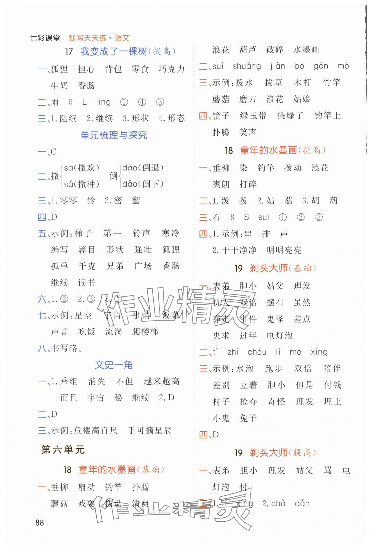 注:目前有些书本章节名称可能整理的还不是很完善,但都是按照顺序排列的,请同学们按照顺序仔细查找。练习册 2024年七彩课堂默写天天练三年级语文下册人教版 答案主要是用来给同学们做完题方便对答案用的,请勿直接抄袭。
