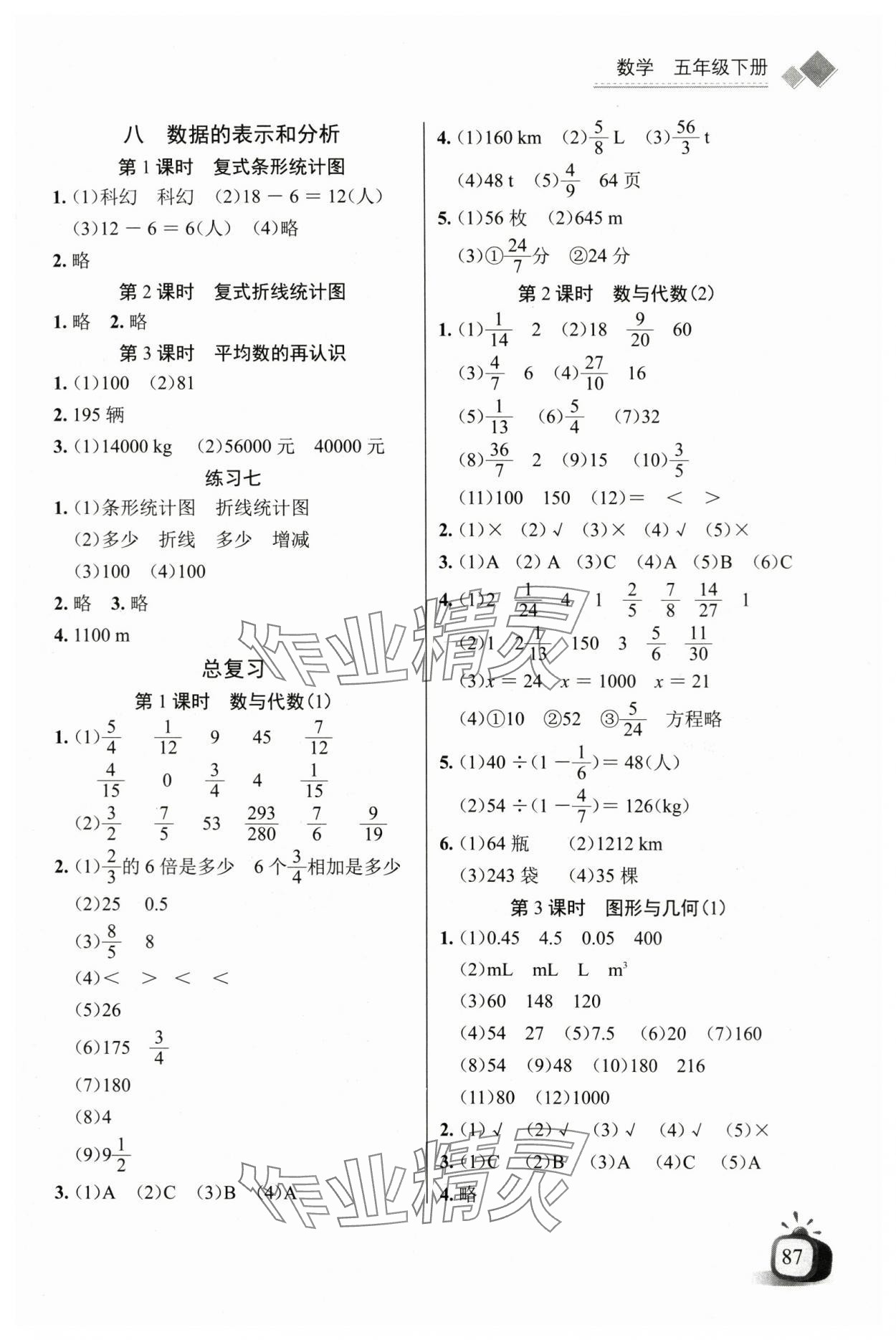 2024年长江全能学案同步练习册五年级数学下册北师大版