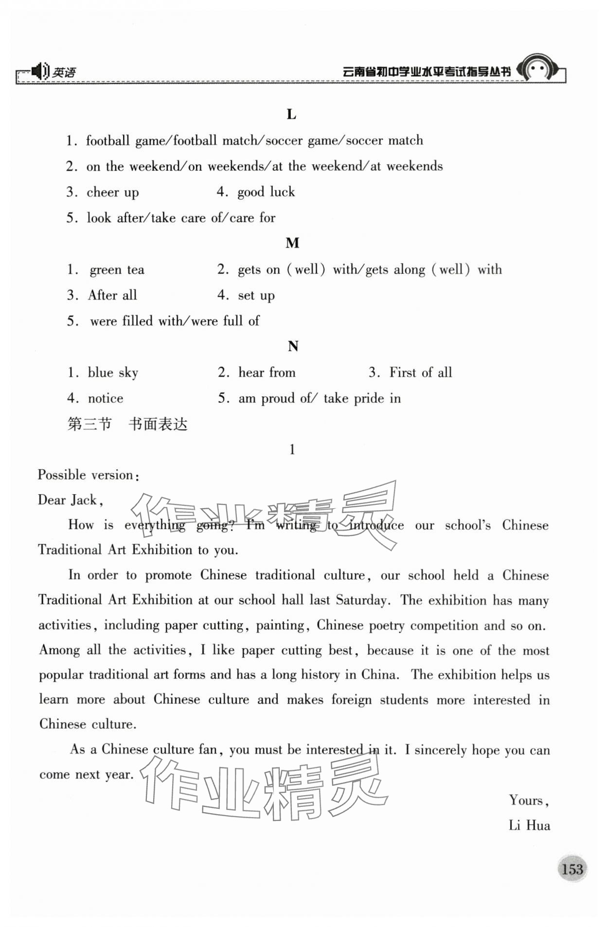 注:目前有些书本章节名称可能整理的还不是很完善,但都是按照顺序排列的,请同学们按照顺序仔细查找。练习册 2024年云南省初中学业水平考试指导丛书英语 答案主要是用来给同学们做完题方便对答案用的,请勿直接抄袭。