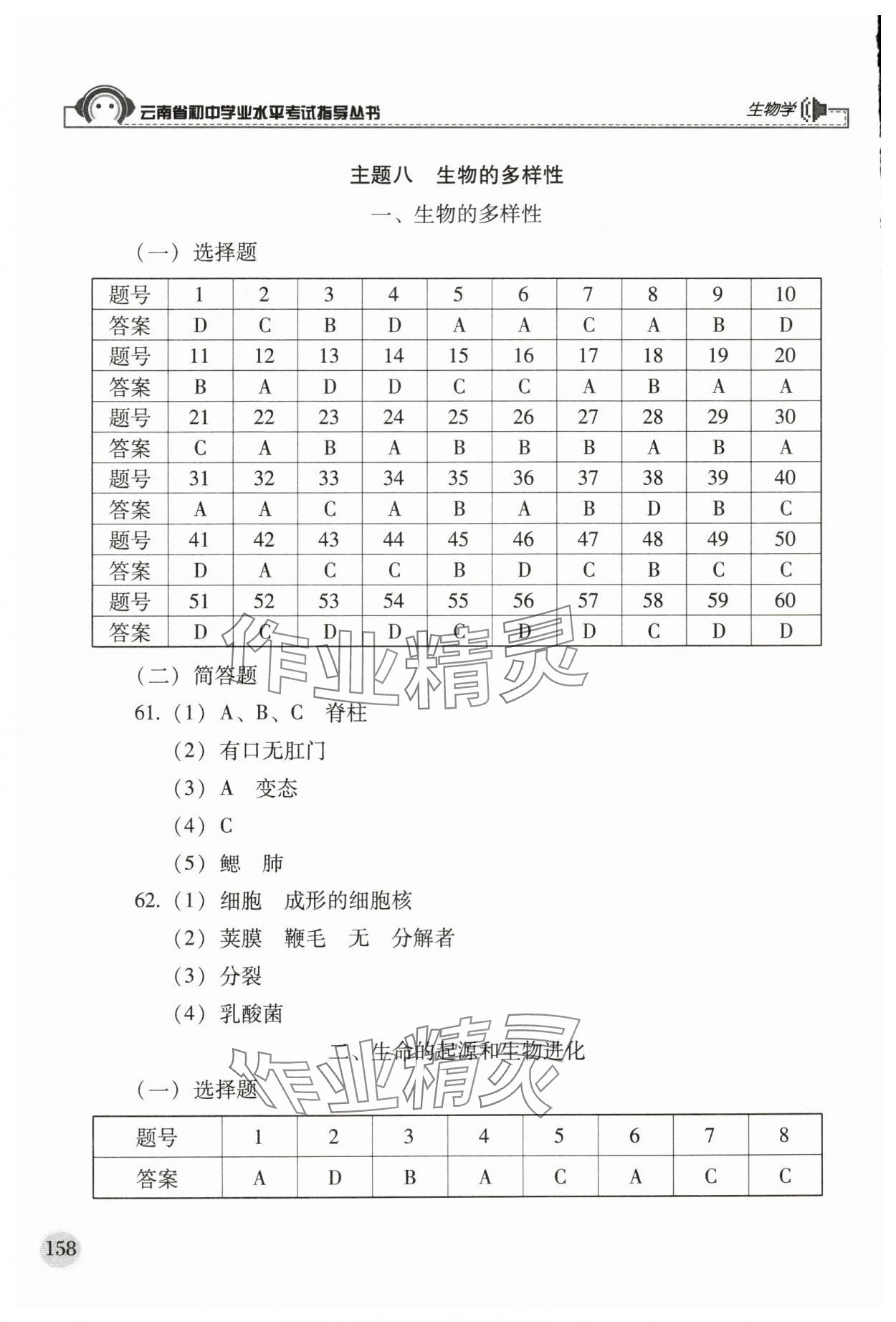 注:目前有些书本章节名称可能整理的还不是很完善,但都是按照顺序排列的,请同学们按照顺序仔细查找。练习册 2024年云南省初中学业水平考试指导丛书生物中考 答案主要是用来给同学们做完题方便对答案用的,请勿直接抄袭。