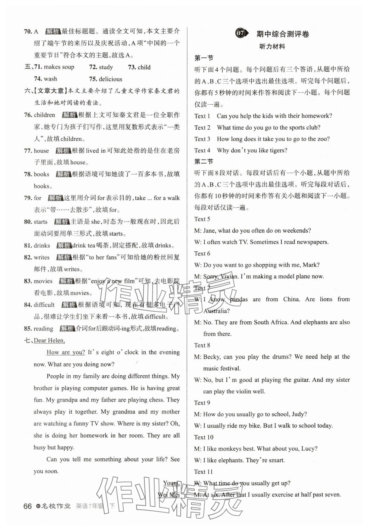 - 参考答案第70页
