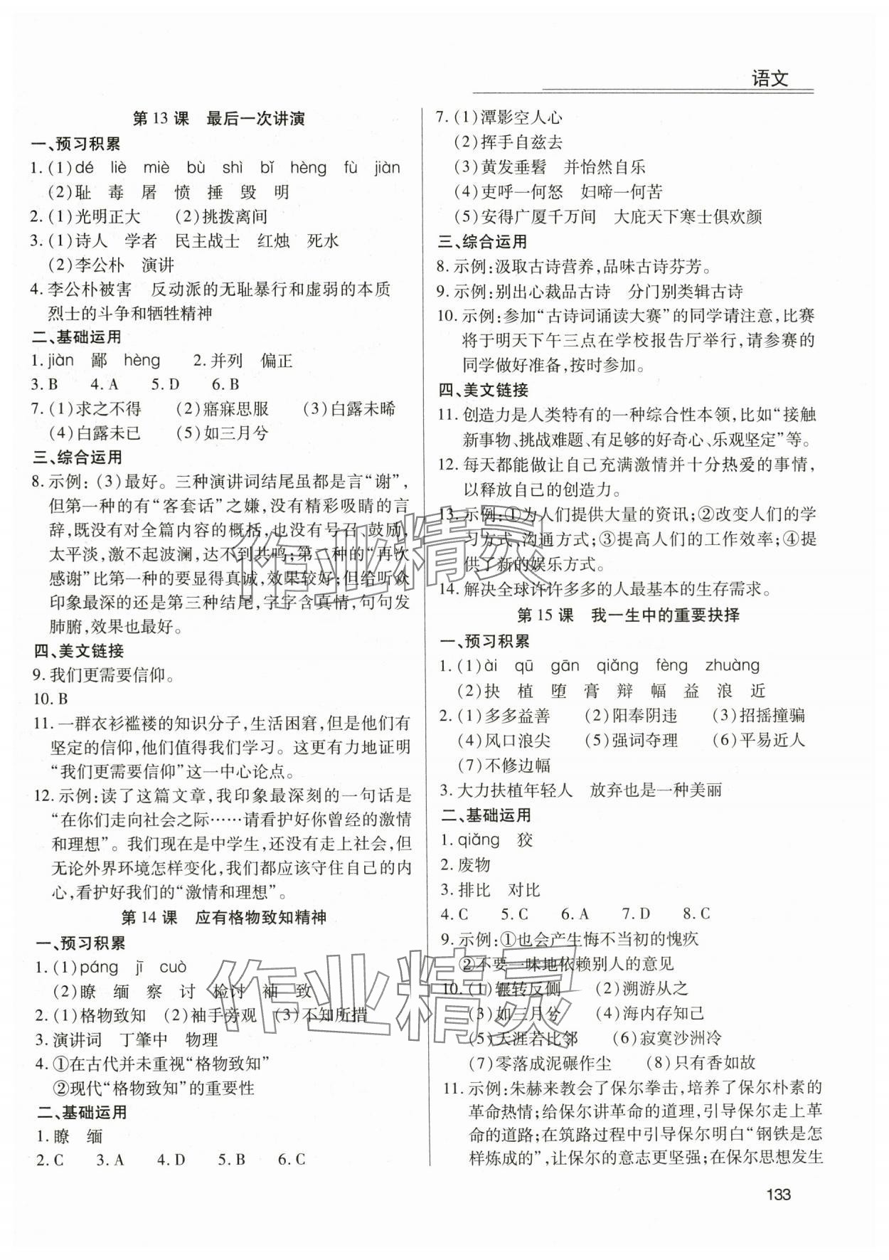 注:目前有些书本章节名称可能整理的还不是很完善,但都是按照顺序排列的,请同学们按照顺序仔细查找。练习册 2024年全练练测考八年级语文下册人教版 答案主要是用来给同学们做完题方便对答案用的,请勿直接抄袭。