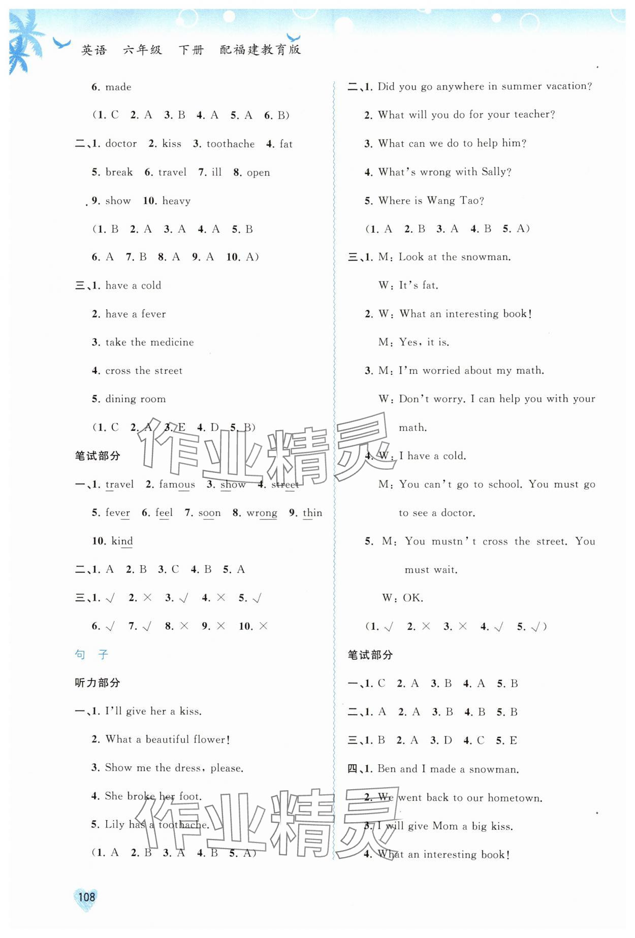 注:目前有些书本章节名称可能整理的还不是很完善,但都是按照顺序排列的,请同学们按照顺序仔细查找。练习册 2024年新课程学习与测评同步学习六年级英语下册闽教版 答案主要是用来给同学们做完题方便对答案用的,请勿直接抄袭。