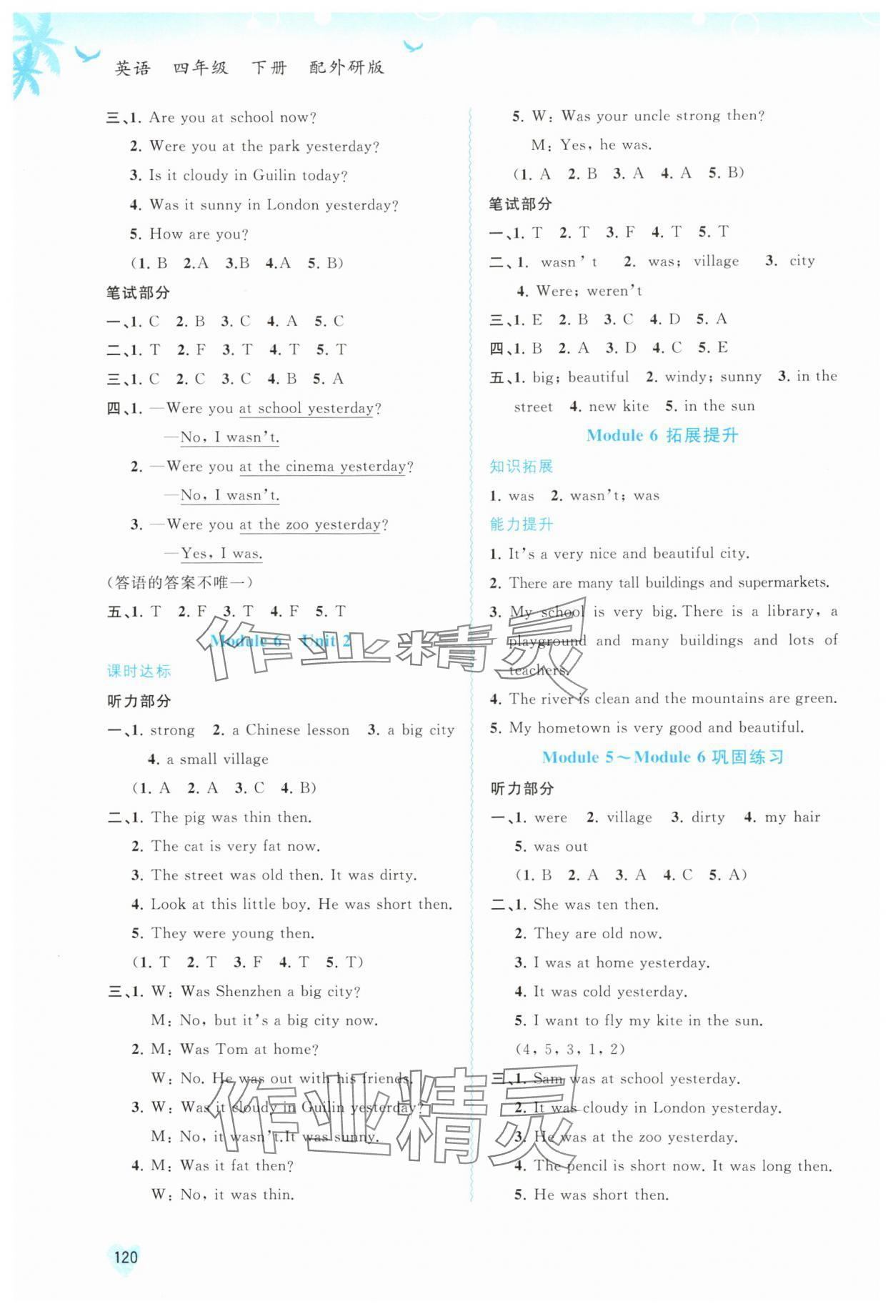 注:目前有些书本章节名称可能整理的还不是很完善,但都是按照顺序排列的,请同学们按照顺序仔细查找。练习册 2024年新课程学习与测评同步学习四年级英语下册外研版 答案主要是用来给同学们做完题方便对答案用的,请勿直接抄袭。