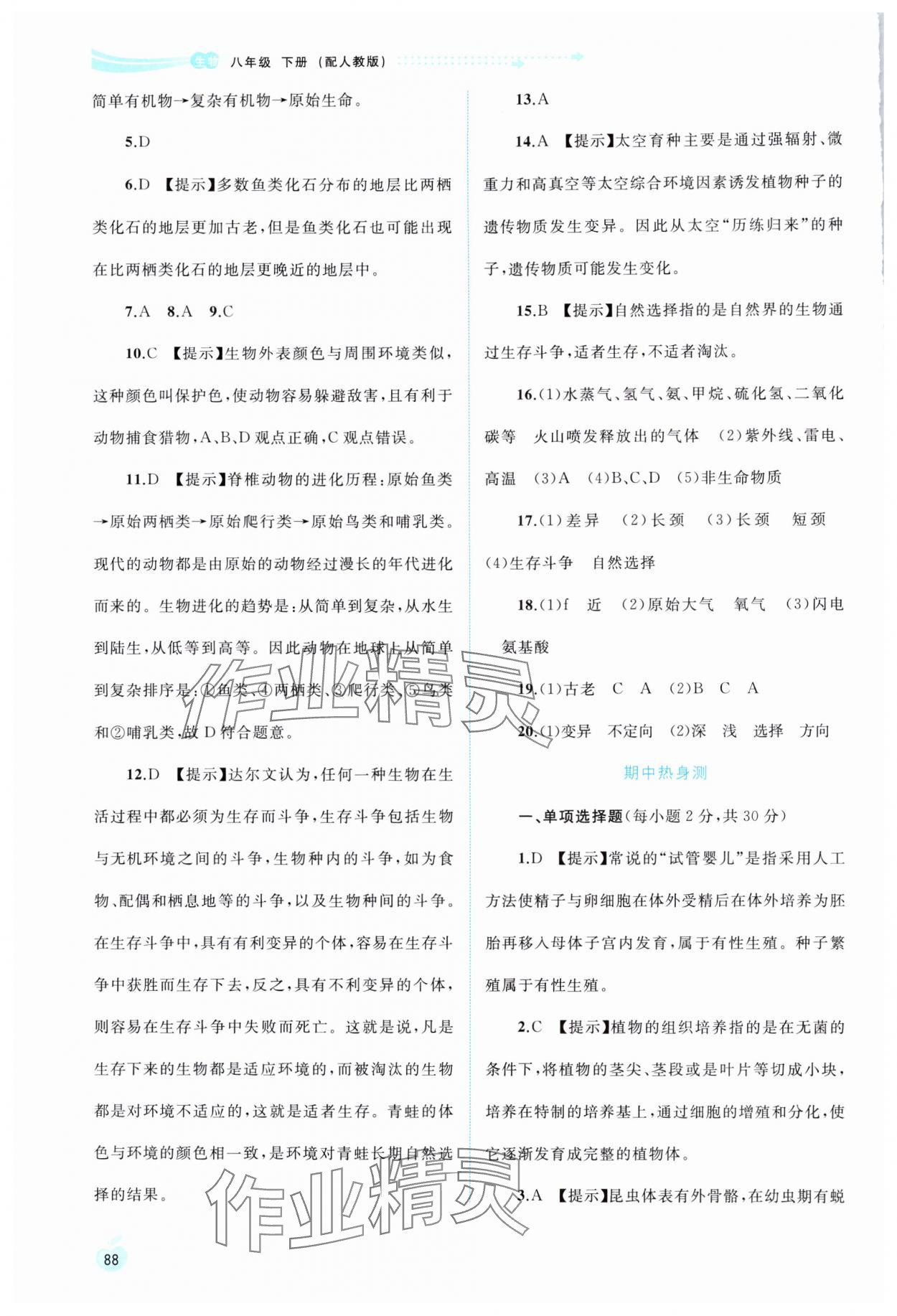 注:目前有些书本章节名称可能整理的还不是很完善,但都是按照顺序排列的,请同学们按照顺序仔细查找。练习册 2024年新课程学习与测评同步学习八年级生物下册人教版 答案主要是用来给同学们做完题方便对答案用的,请勿直接抄袭。