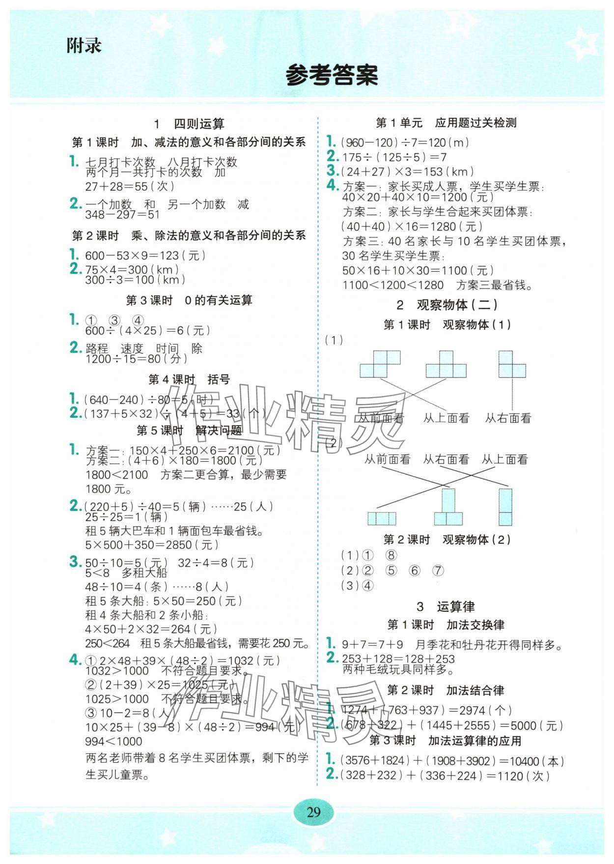 注:目前有些书本章节名称可能整理的还不是很完善,但都是按照顺序排列的,请同学们按照顺序仔细查找。练习册 2024年计算一本通四年级数学下册人教版广东专版 答案主要是用来给同学们做完题方便对答案用的,请勿直接抄袭。