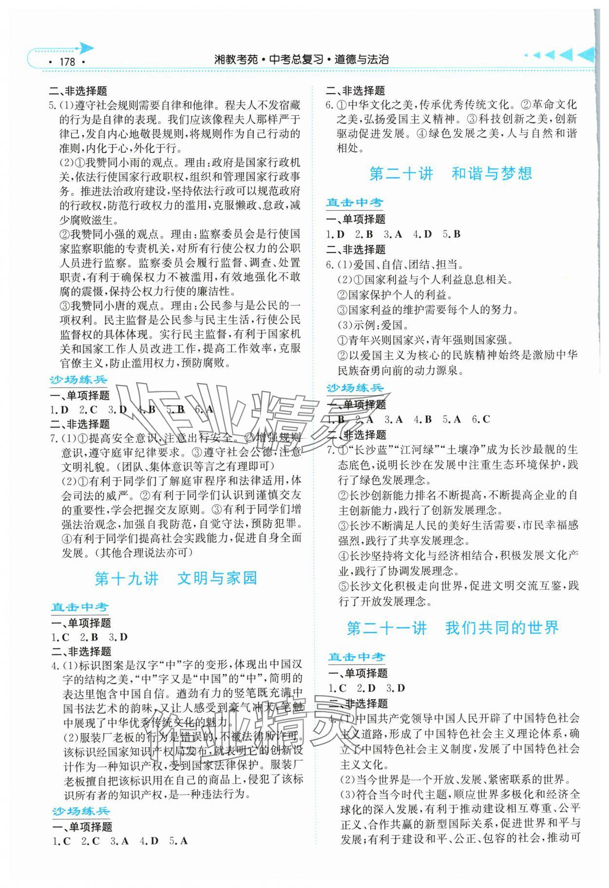 注:目前有些书本章节名称可能整理的还不是很完善,但都是按照顺序排列的,请同学们按照顺序仔细查找。练习册 2024年湘教考苑中考总复习道德与法治长沙专版 答案主要是用来给同学们做完题方便对答案用的,请勿直接抄袭。