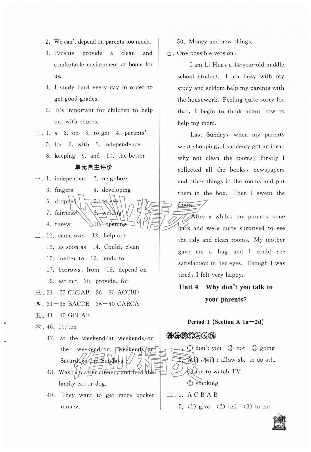 注:目前有些书本章节名称可能整理的还不是很完善,但都是按照顺序排列的,请同学们按照顺序仔细查找。练习册 2024年新课程助学丛书八年级英语下册人教版 答案主要是用来给同学们做完题方便对答案用的,请勿直接抄袭。