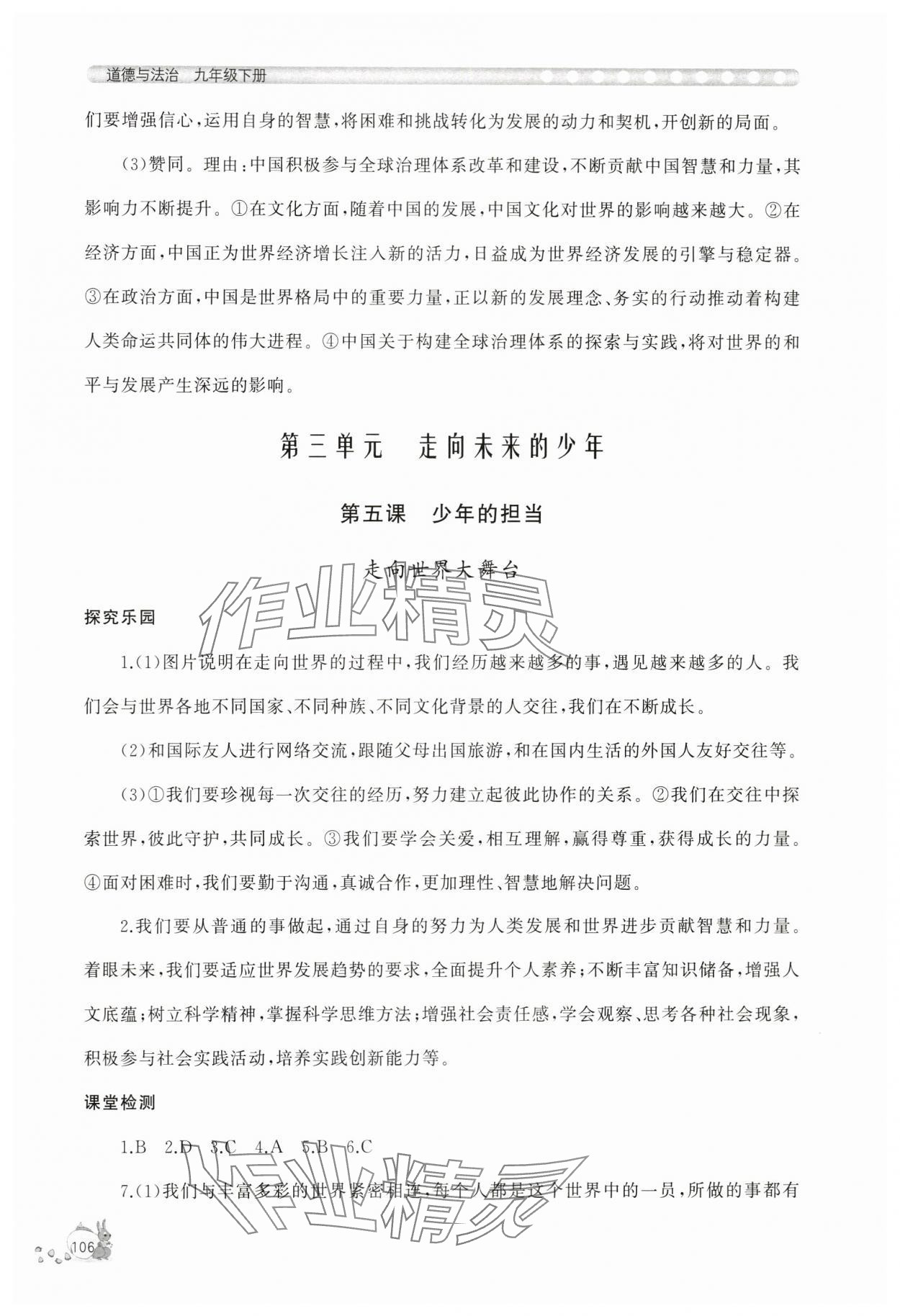 注:目前有些书本章节名称可能整理的还不是很完善,但都是按照顺序排列的,请同学们按照顺序仔细查找。练习册 2024年新课程助学丛书九年级道德与法治下册人教版 答案主要是用来给同学们做完题方便对答案用的,请勿直接抄袭。