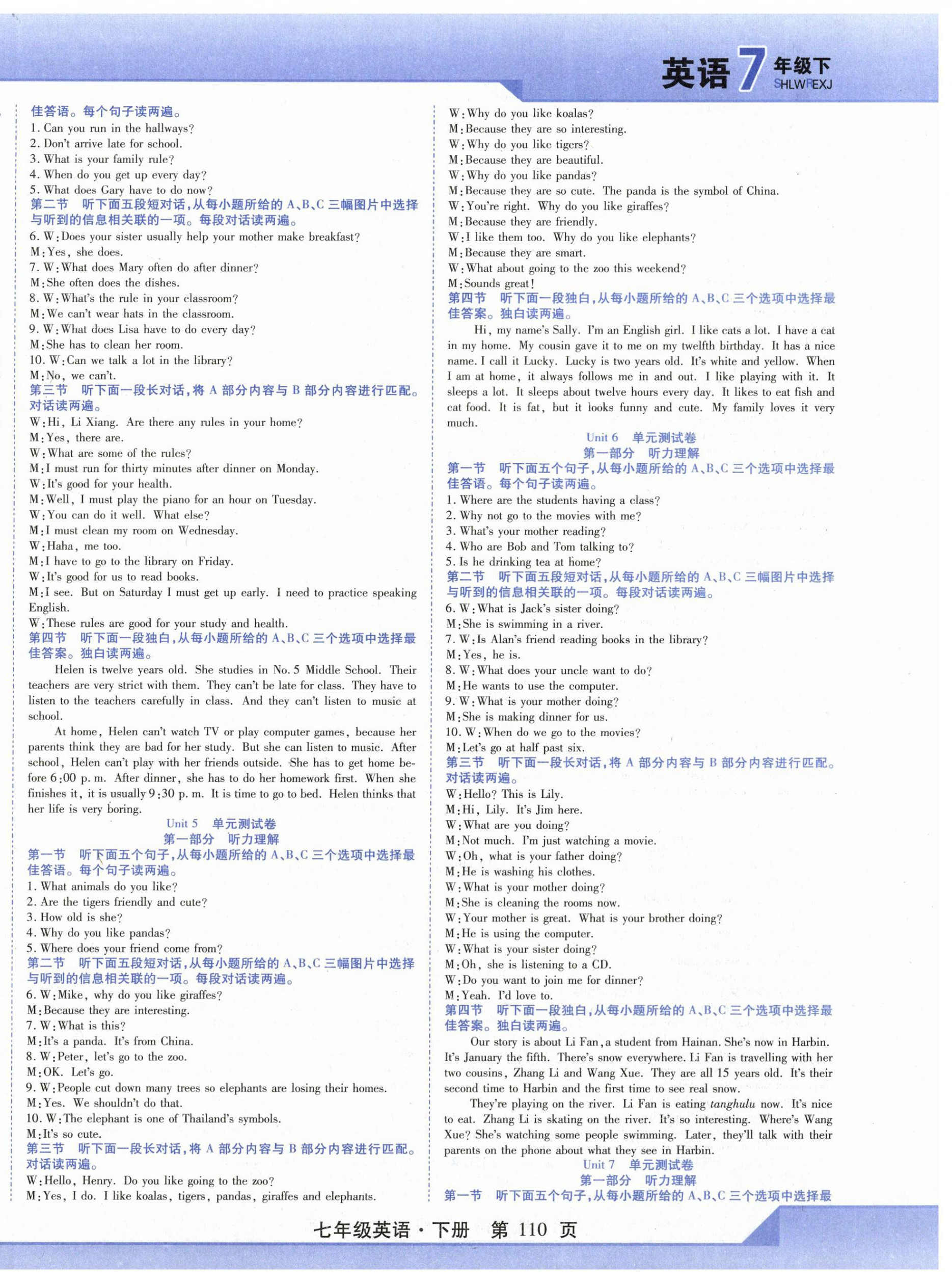 注:目前有些书本章节名称可能整理的还不是很完善,但都是按照顺序排列的,请同学们按照顺序仔细查找。练习册 2024年精析巧练七年级英语下册人教版 答案主要是用来给同学们做完题方便对答案用的,请勿直接抄袭。
