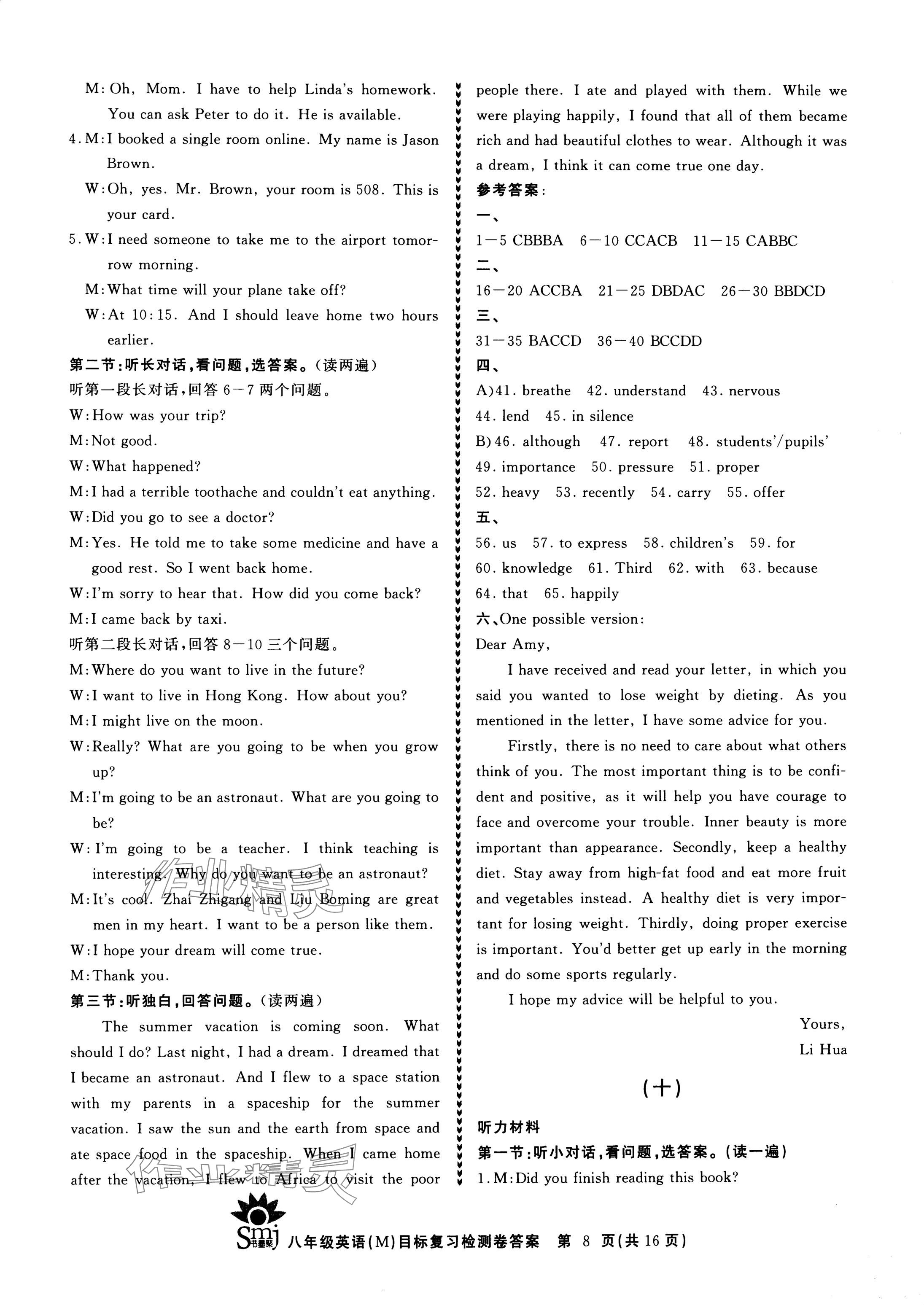 注:目前有些书本章节名称可能整理的还不是很完善,但都是按照顺序排列的,请同学们按照顺序仔细查找。练习册 2024年目标复习检测卷八年级英语下册人教版 答案主要是用来给同学们做完题方便对答案用的,请勿直接抄袭。