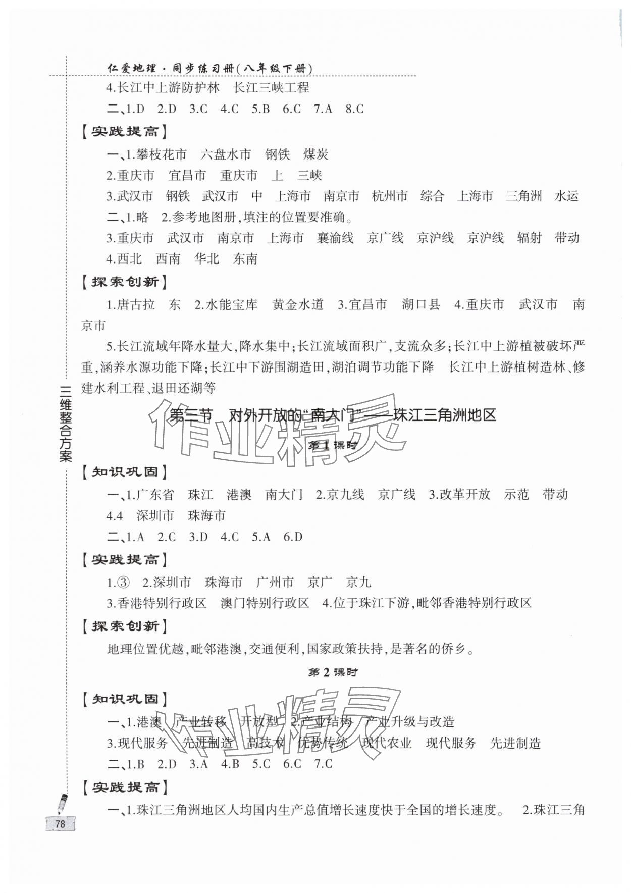 注:目前有些书本章节名称可能整理的还不是很完善,但都是按照顺序排列的,请同学们按照顺序仔细查找。练习册 2024年仁爱地理同步练习册八年级下册仁爱版 答案主要是用来给同学们做完题方便对答案用的,请勿直接抄袭。