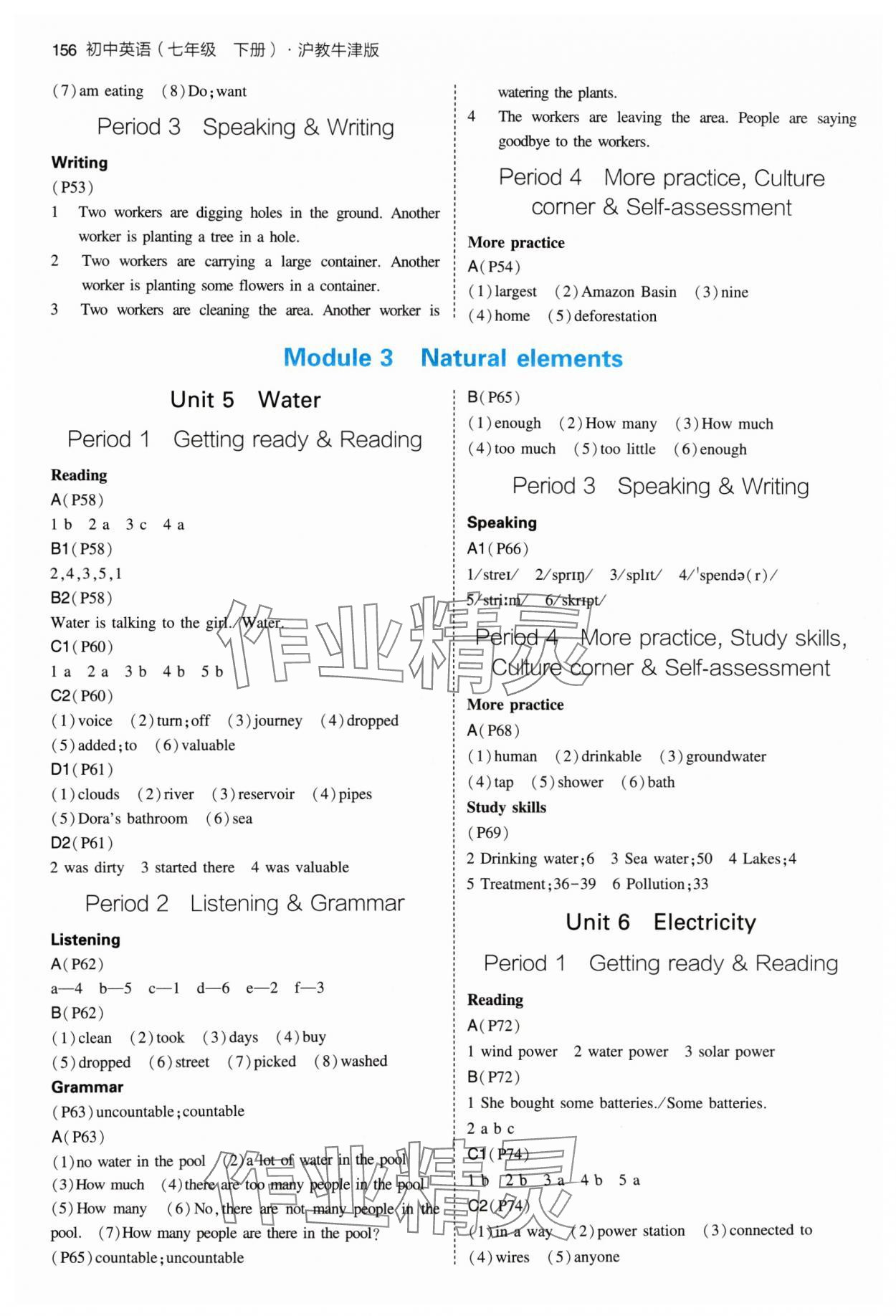 注:目前有些书本章节名称可能整理的还不是很完善,但都是按照顺序排列的,请同学们按照顺序仔细查找。练习册 2024年教材课本七年级英语下册沪教版 答案主要是用来给同学们做完题方便对答案用的,请勿直接抄袭。